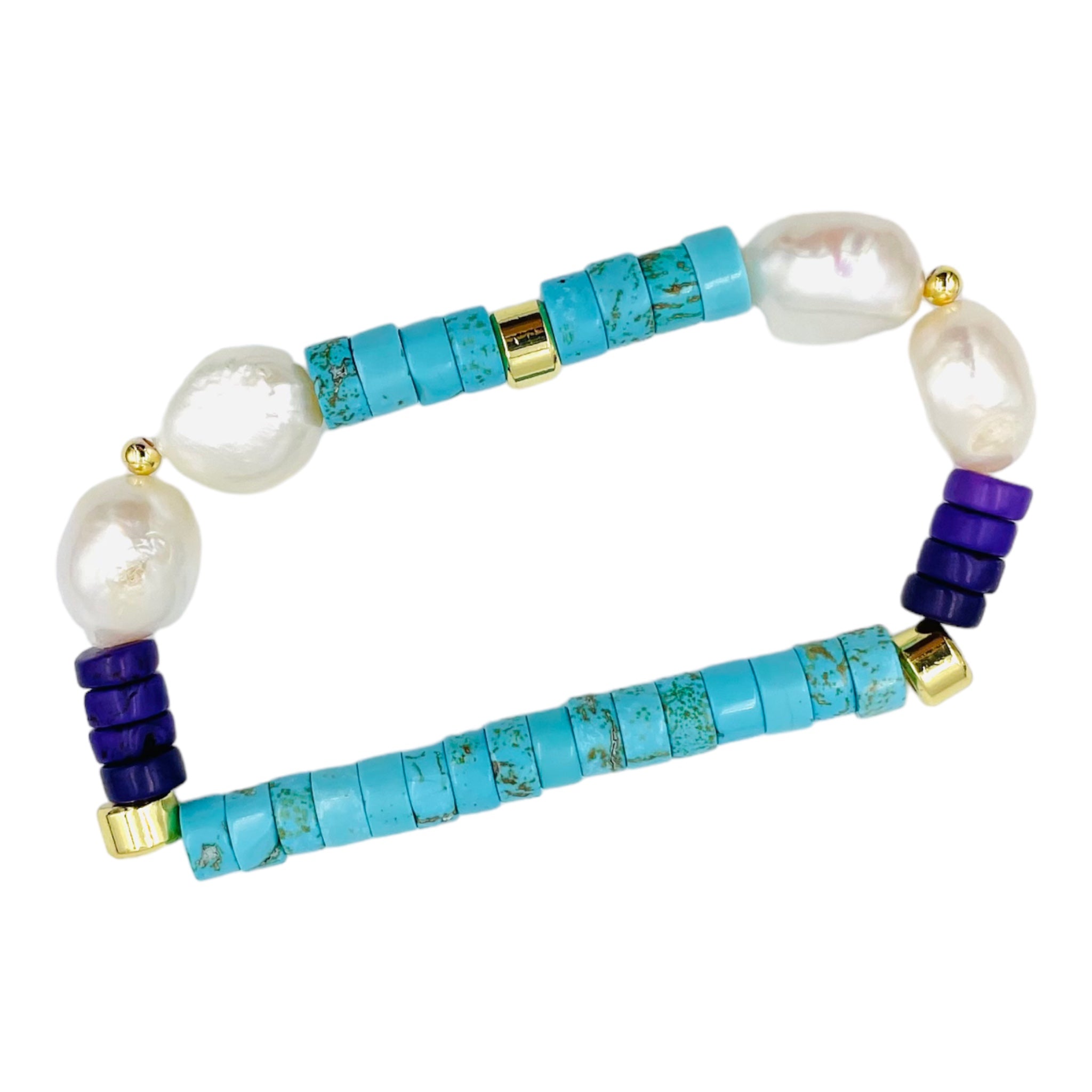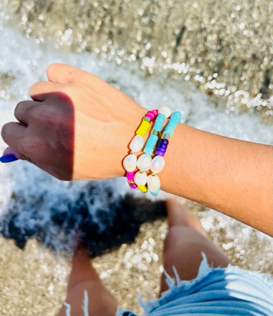 Composé de pierres et de perles d'eau douce, ce ravissant bracelet, réalisé à la main, se  décline en  différentes couleurs. L'occasion de créer des associations variées et personnalisées, adaptées à vos tenues.