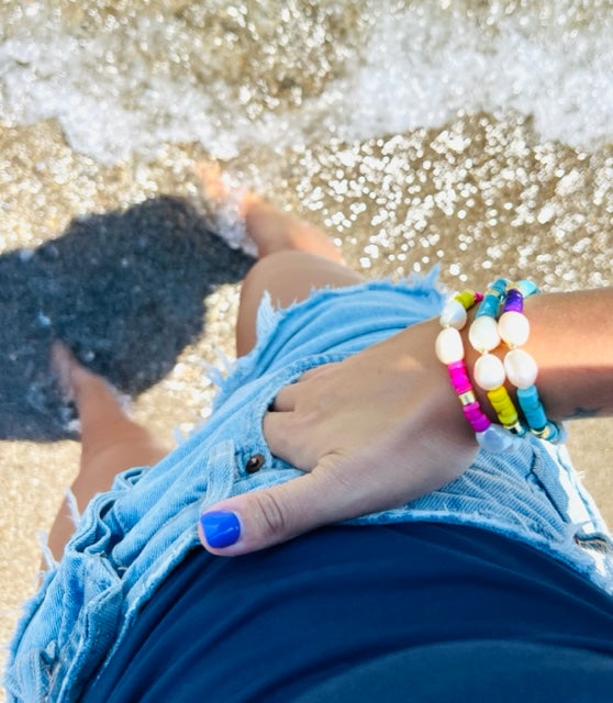 Composé de pierres et de perles d'eau douce, ce ravissant bracelet, réalisé à la main, se décline en différentes couleurs. L'occasion de créer des associations variées et personnalisées, adaptées à vos tenues.