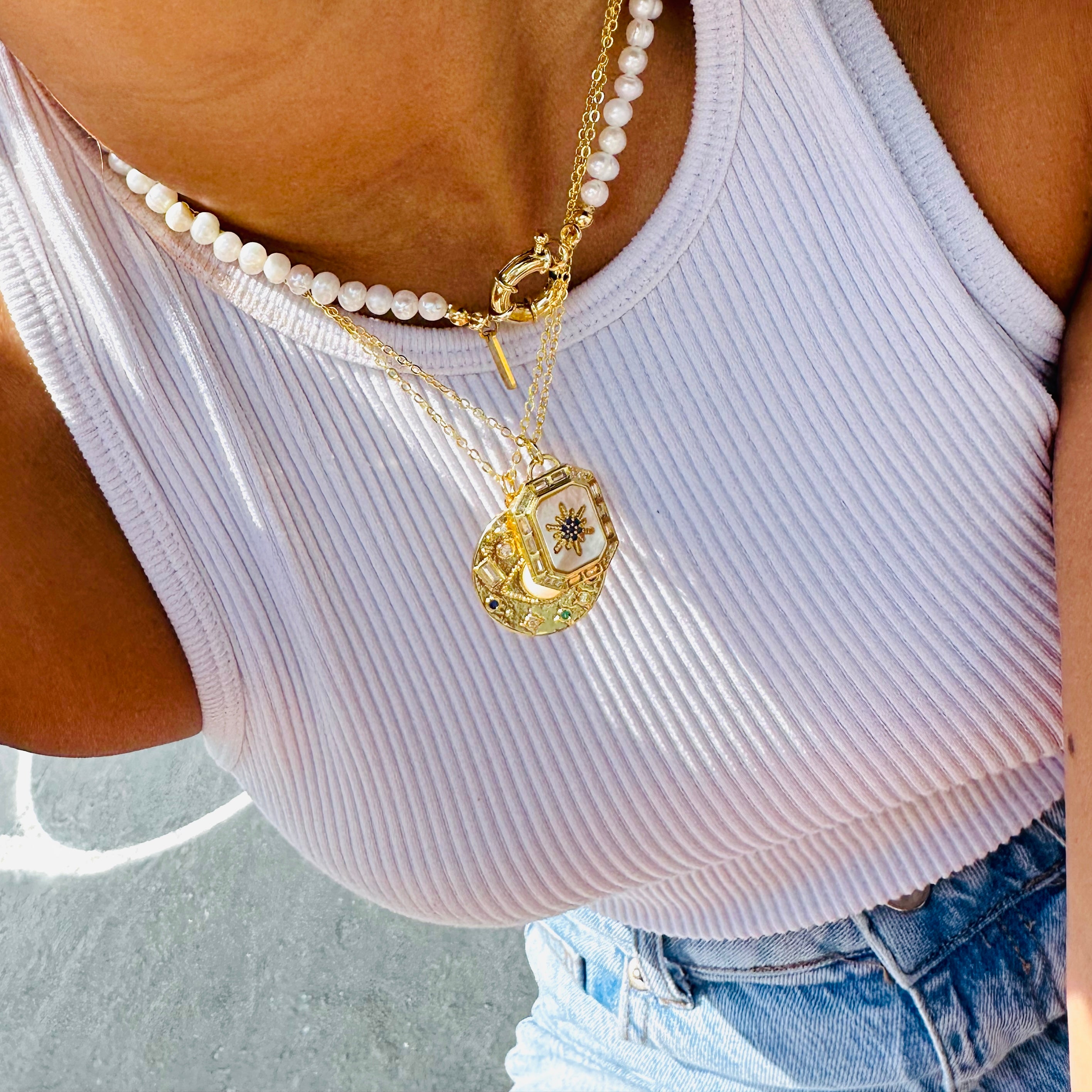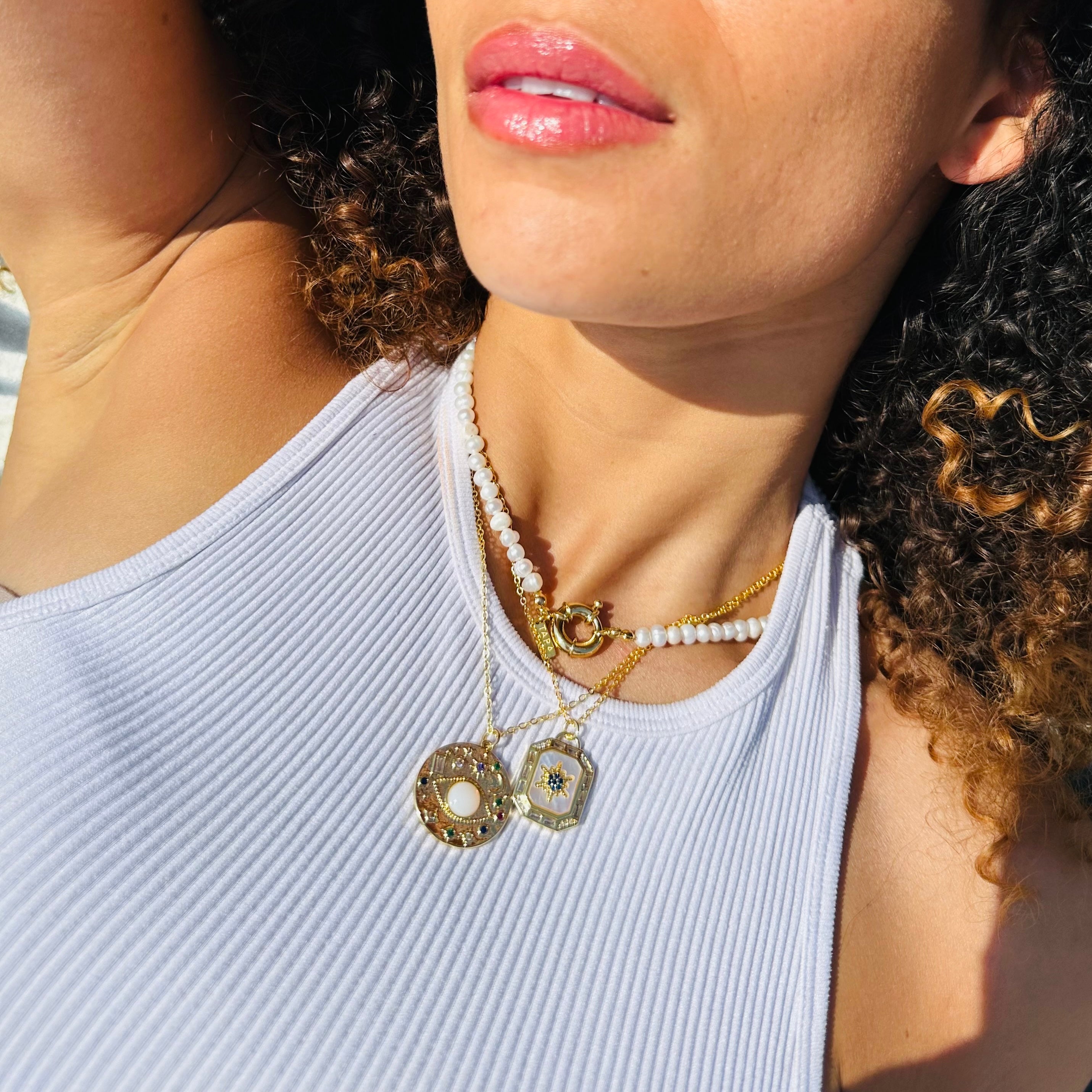 Ce très joli collier peut être porté, telle une amulette protectrice, seul ou associé à d'autres porte-bonheur. Comme un soleil qui brille de mille feux grâce à la brillance du zircon, il  peut illuminer tant à vos tenues décontractées que plus élégante à tous moments.
