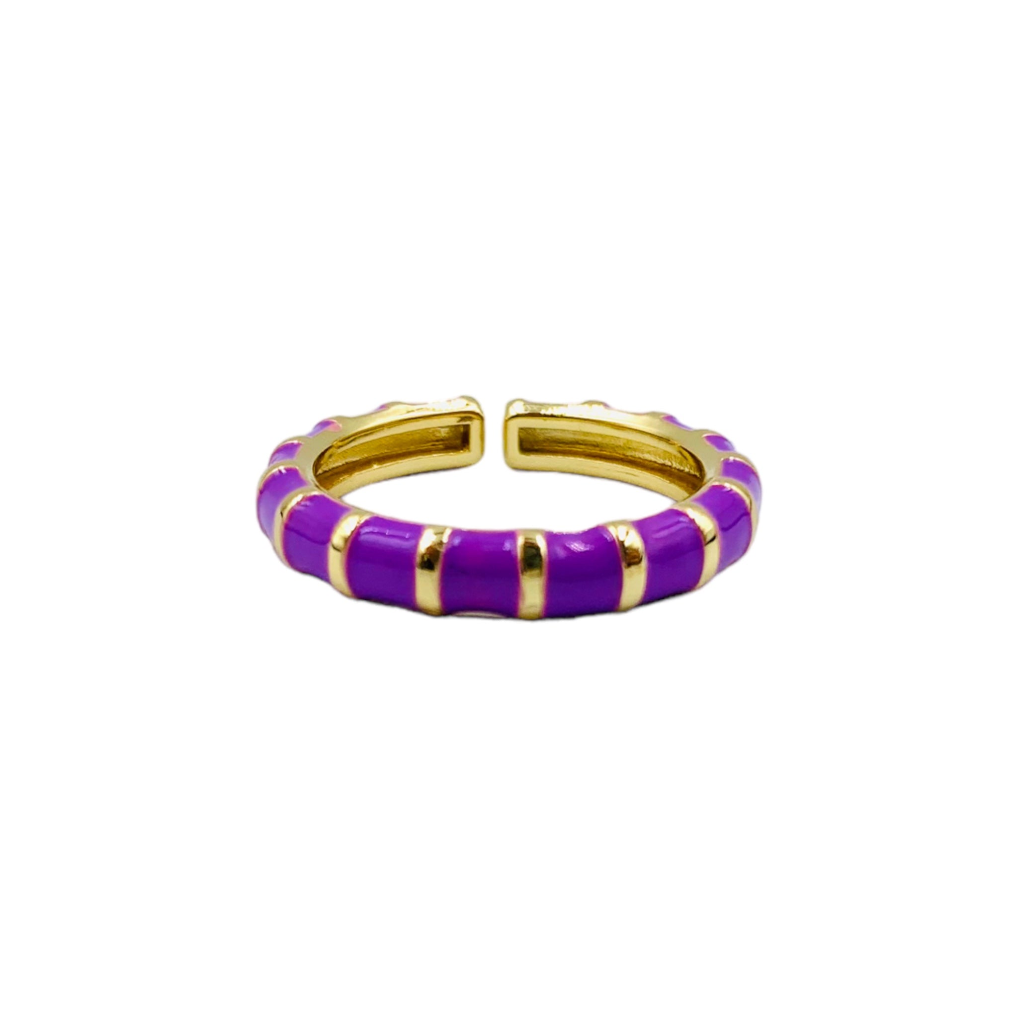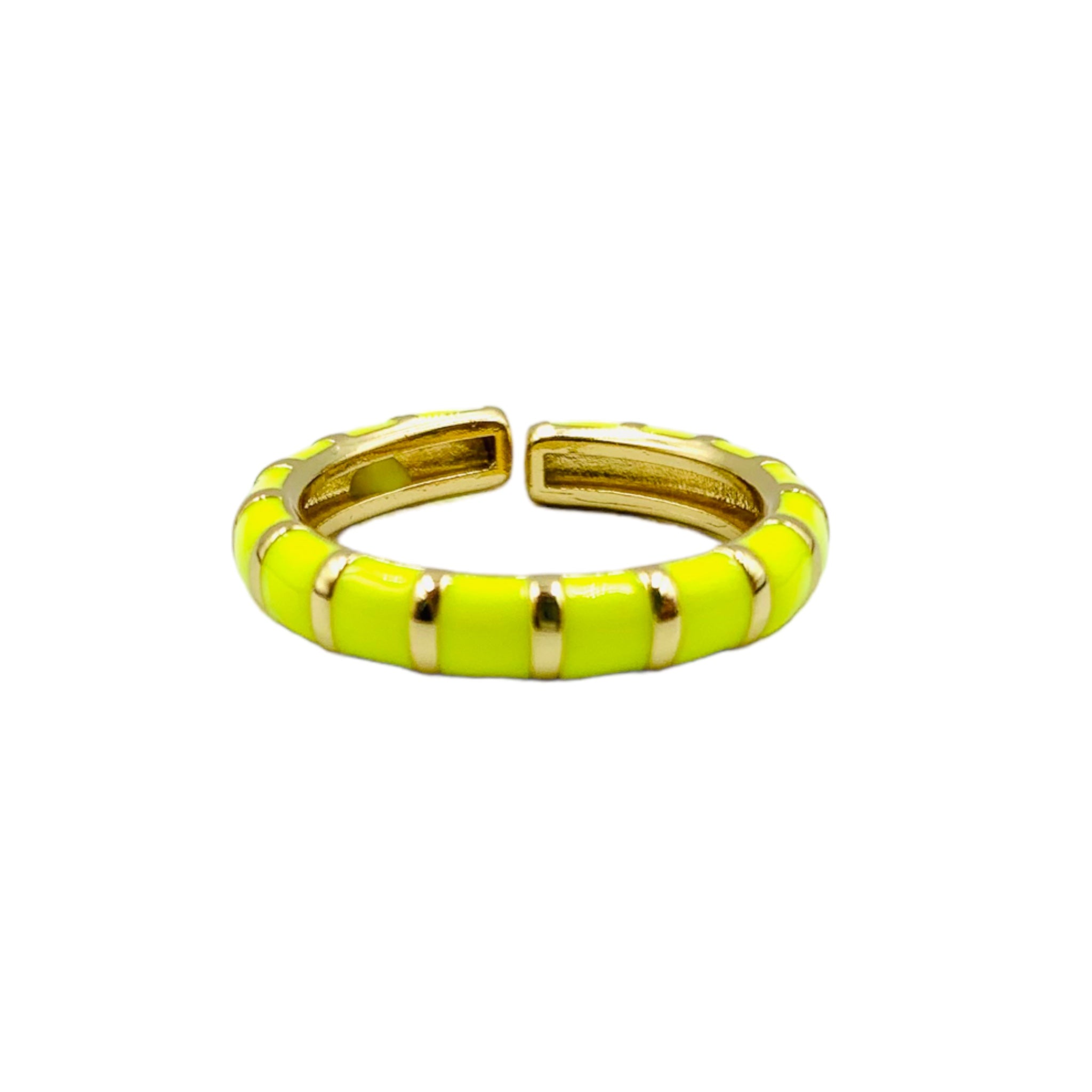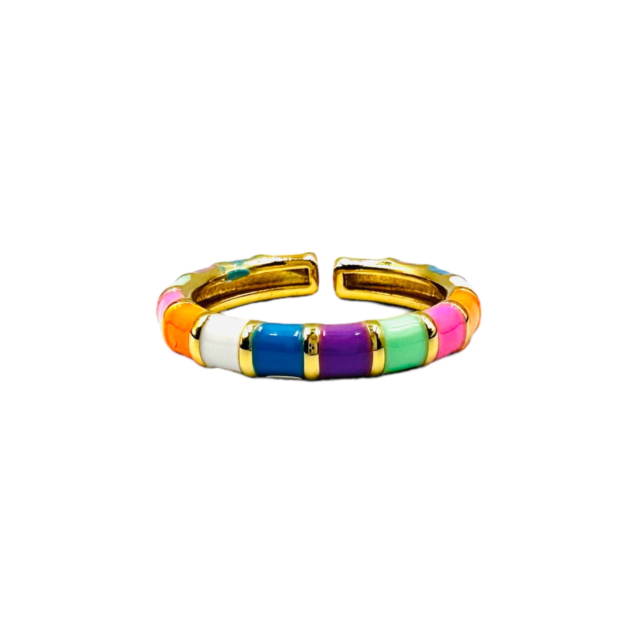 Décliné en diverses couleurs, ce joli bijou en émail réhaussé de détails plaqués en or 18 carats peut se porter seul ou avec d'autres variantes de couleur. Cette version arc-en-ciel apportera peps et éclat à votre look. Sublimez votre main et ajoutez une touche fantaisie à votre style.