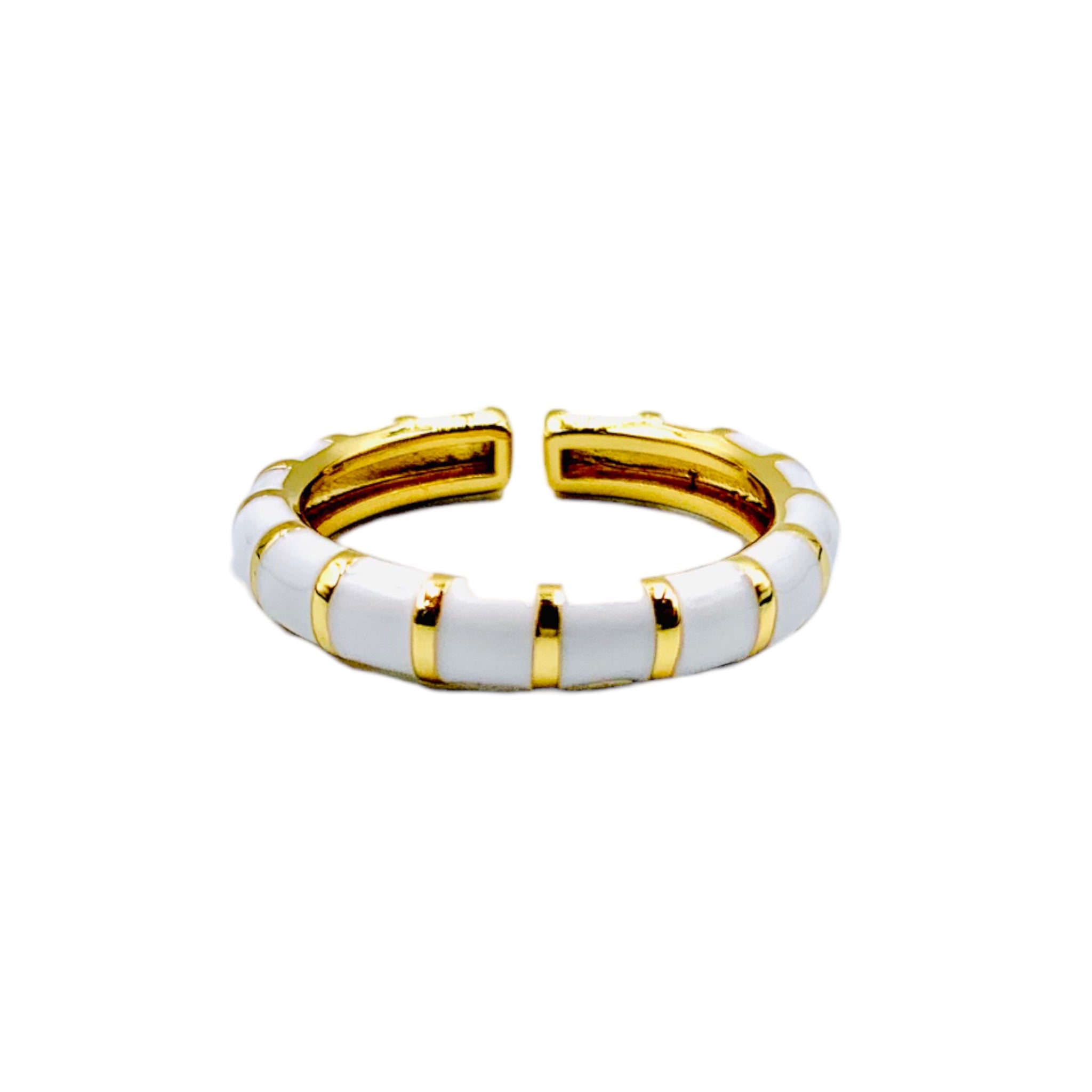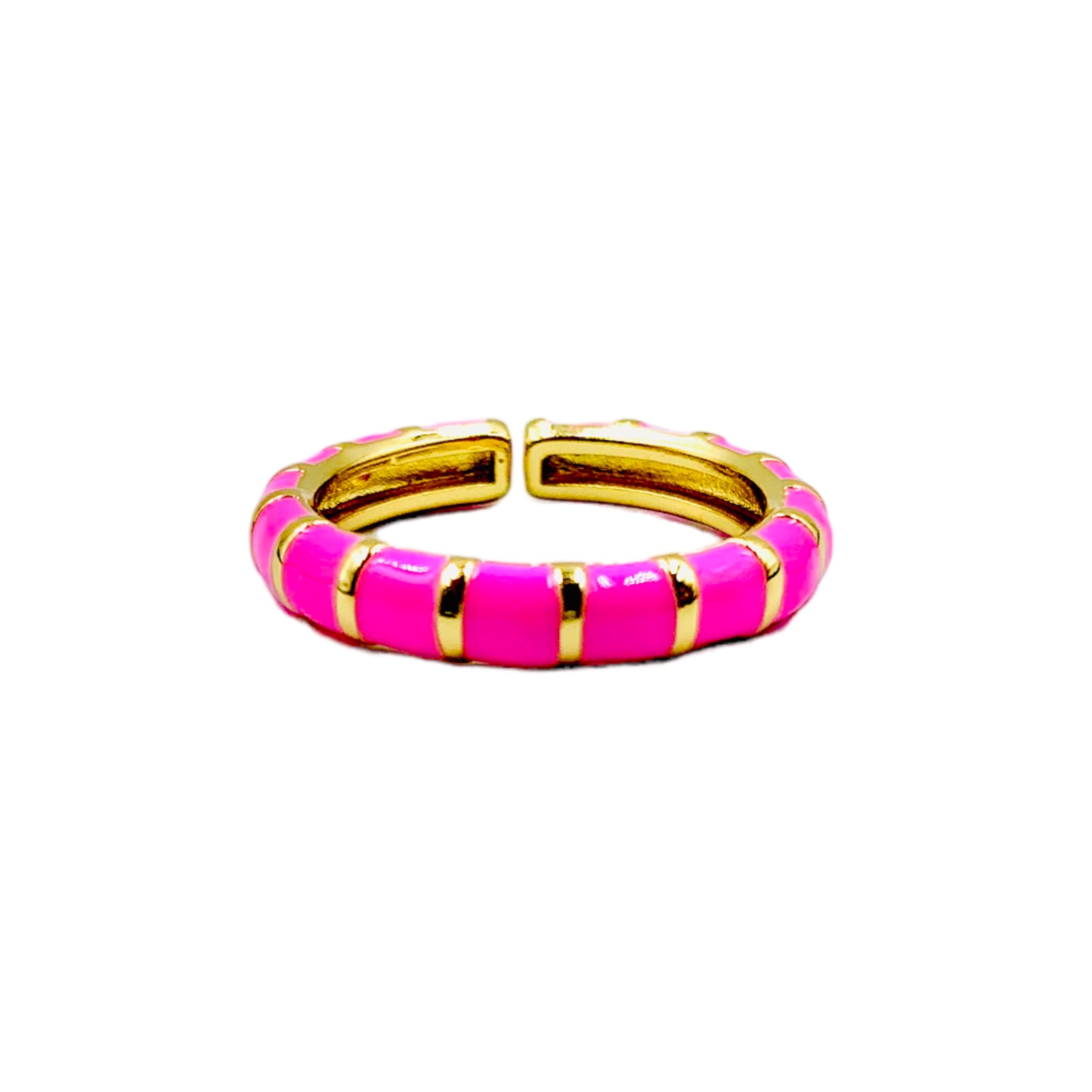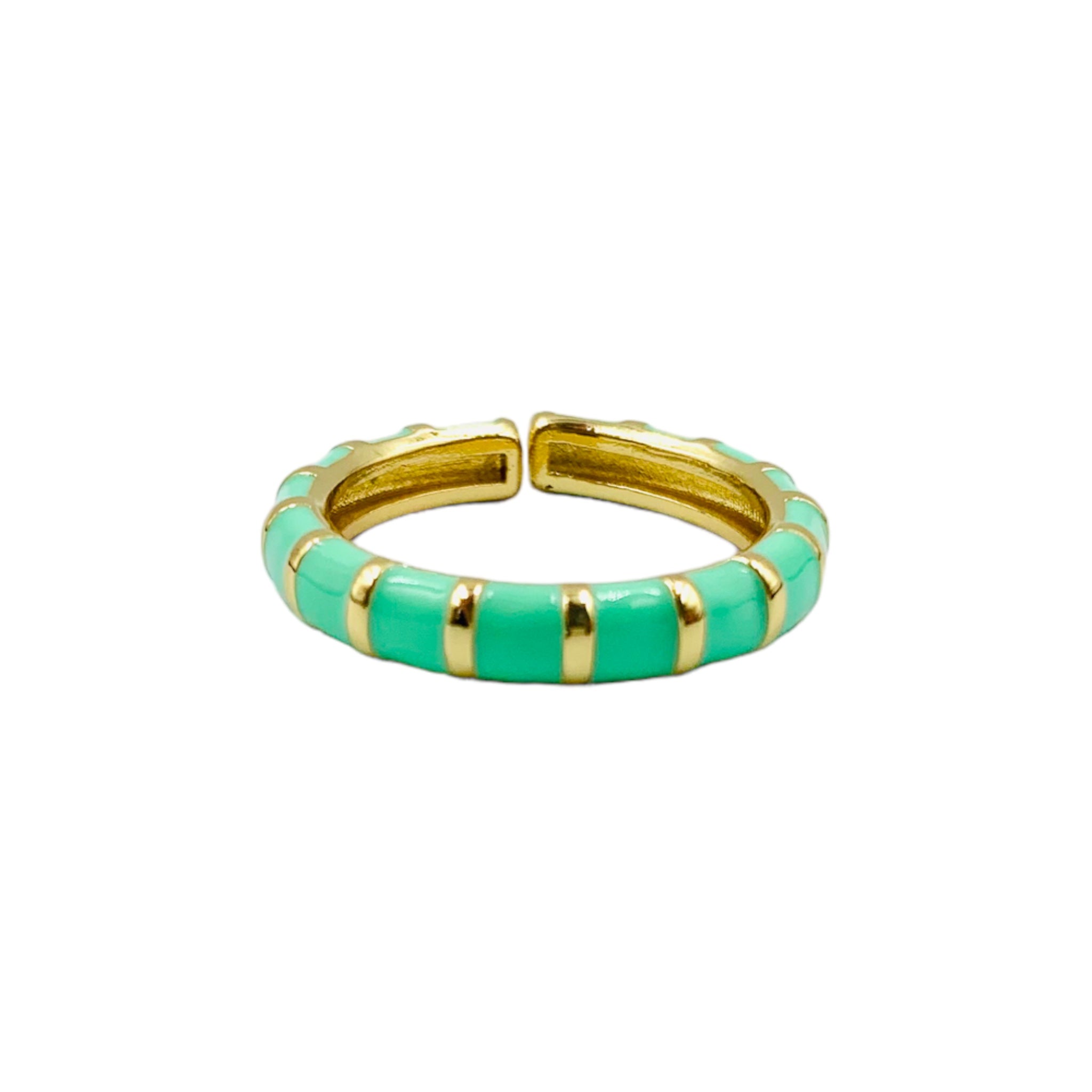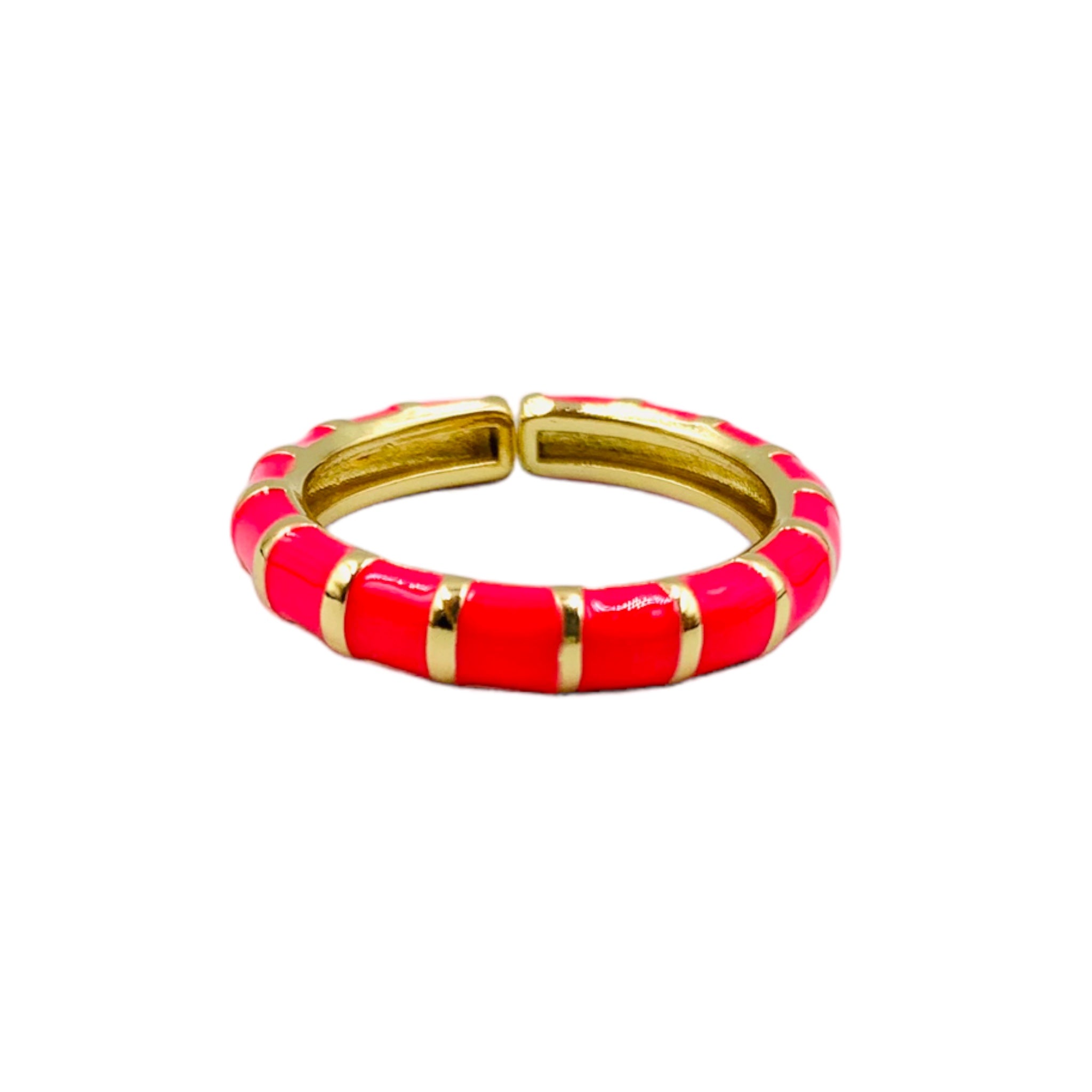 Décliné en diverses couleurs, ce joli bijou en émail réhaussé de détails plaqués en or 18 carats peut se porter seul ou avec d'autres variantes de couleur. Cette version arc-en-ciel apportera peps et éclat à votre look. Sublimez votre main et ajoutez une touche fantaisie à votre style.