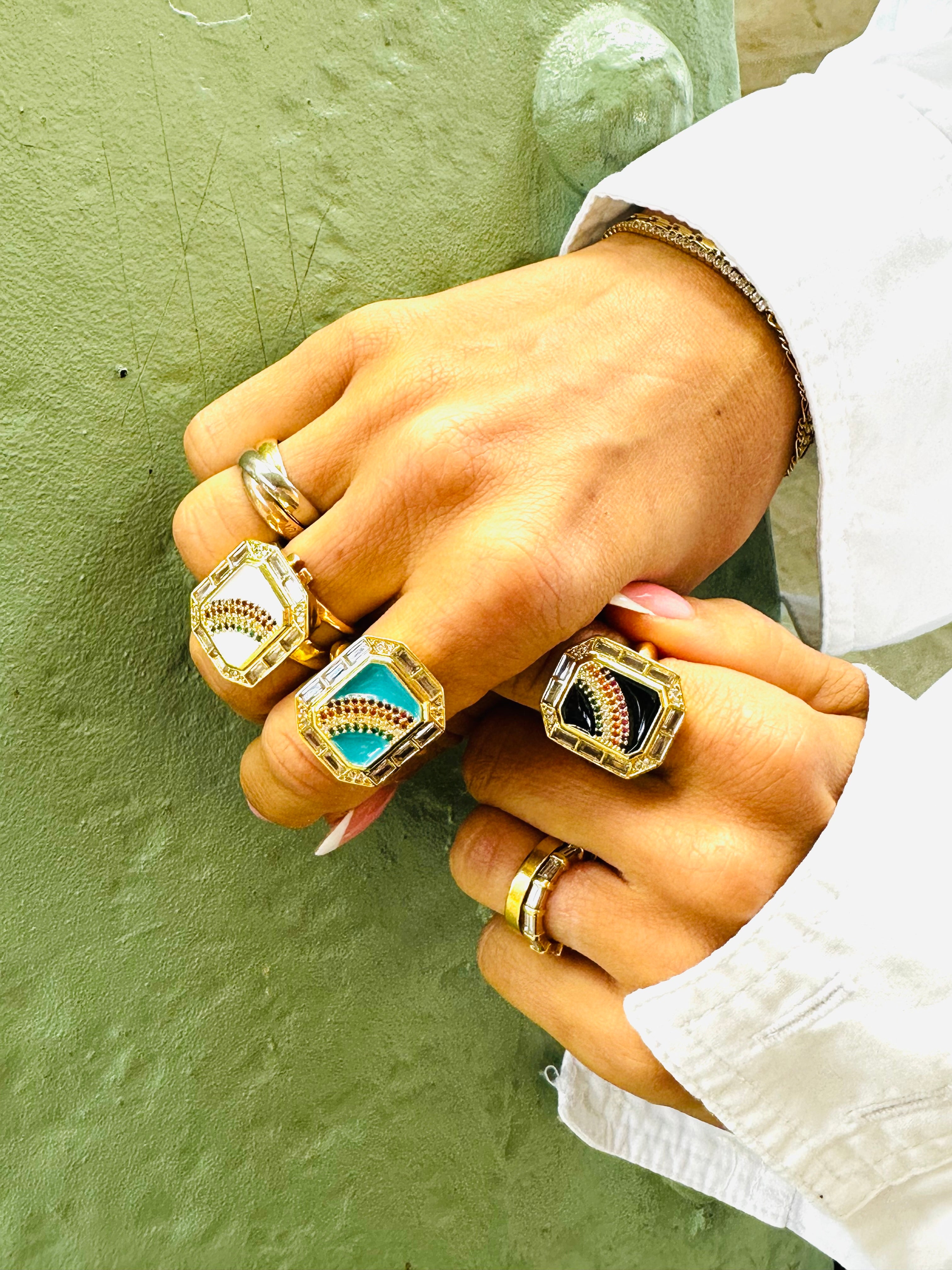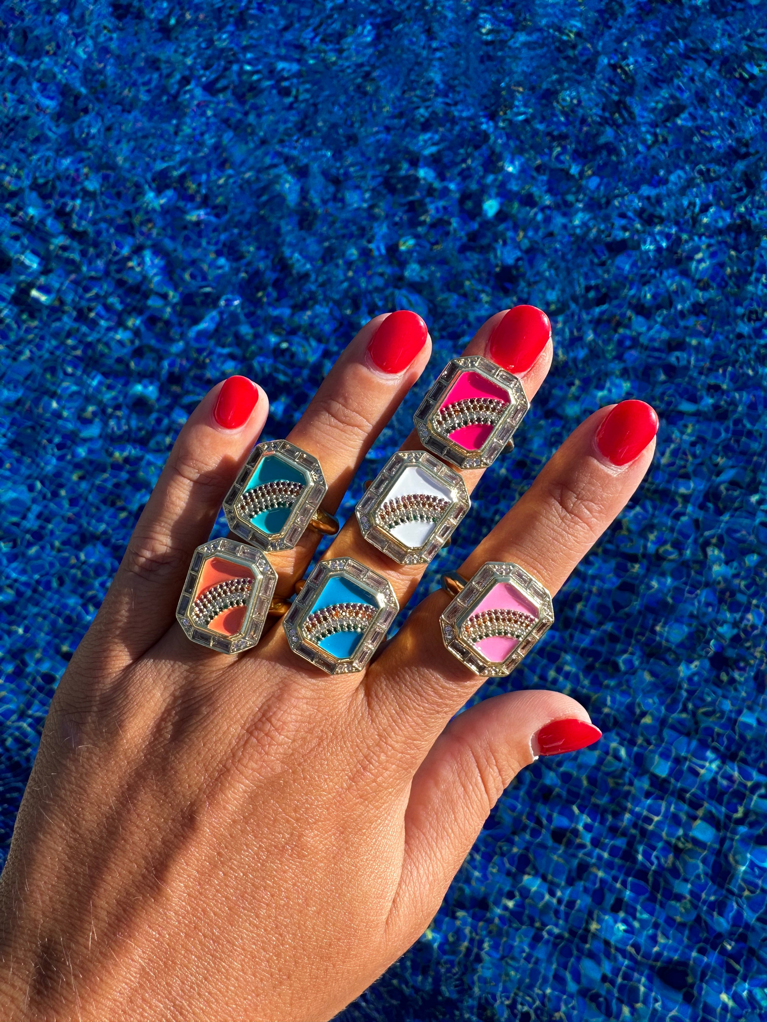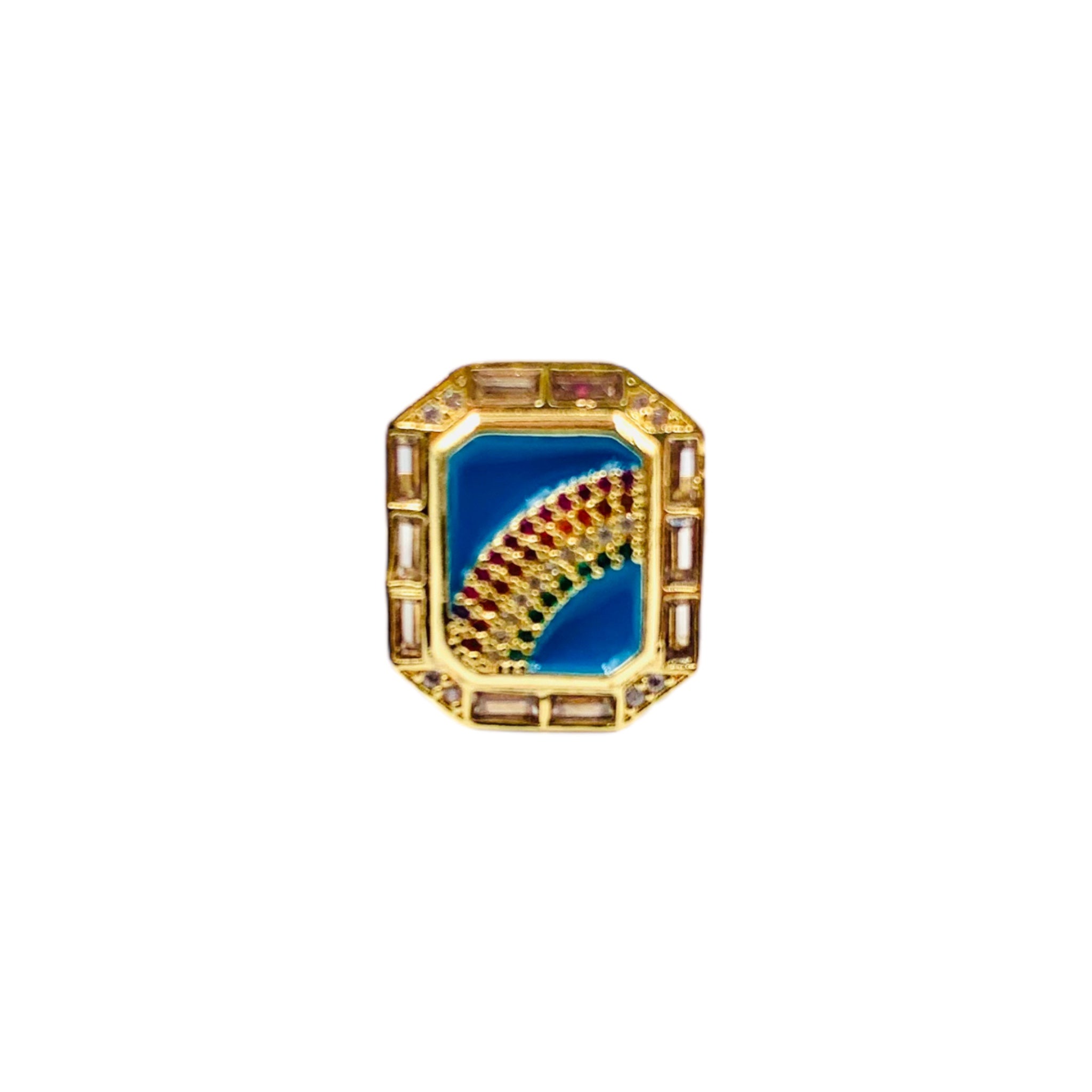 Sublimez votre style avec cette bague en plaqué or 18 carats, zircon et émail. Grâce à l'éclat du zircon, un arc-en-ciel brille de mille feux sur ce joli bijou qui peut se porter en toutes circonstances pour illuminer votre look.