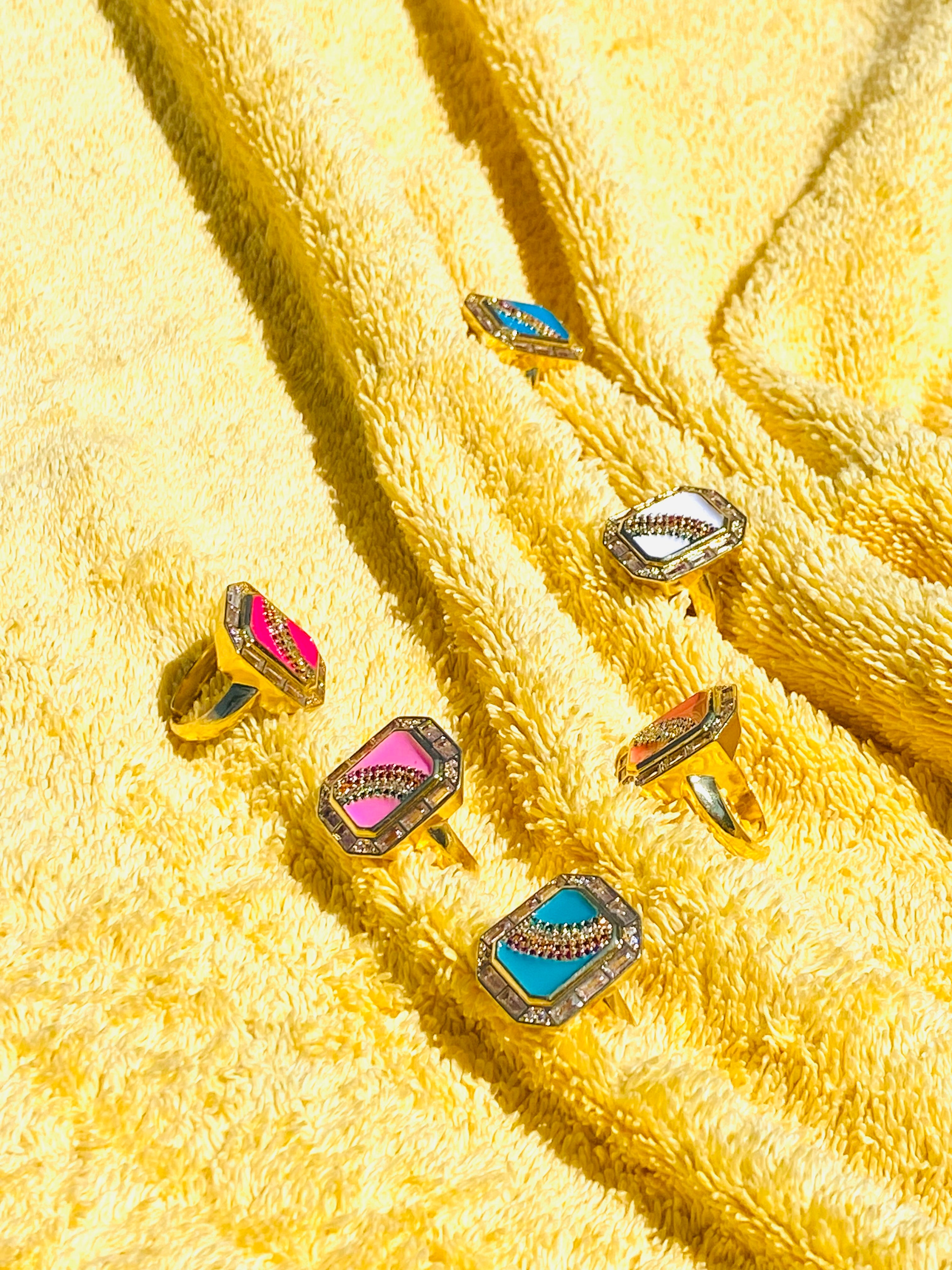 Sublimez votre style avec cette bague en plaqué or 18 carats, zircon et émail. Un arc-en-ciel brille de mille feux grâce à l'éclat du zircon. Ce joli bijou peut être porté en toutes circonstances pour illuminer votre look.