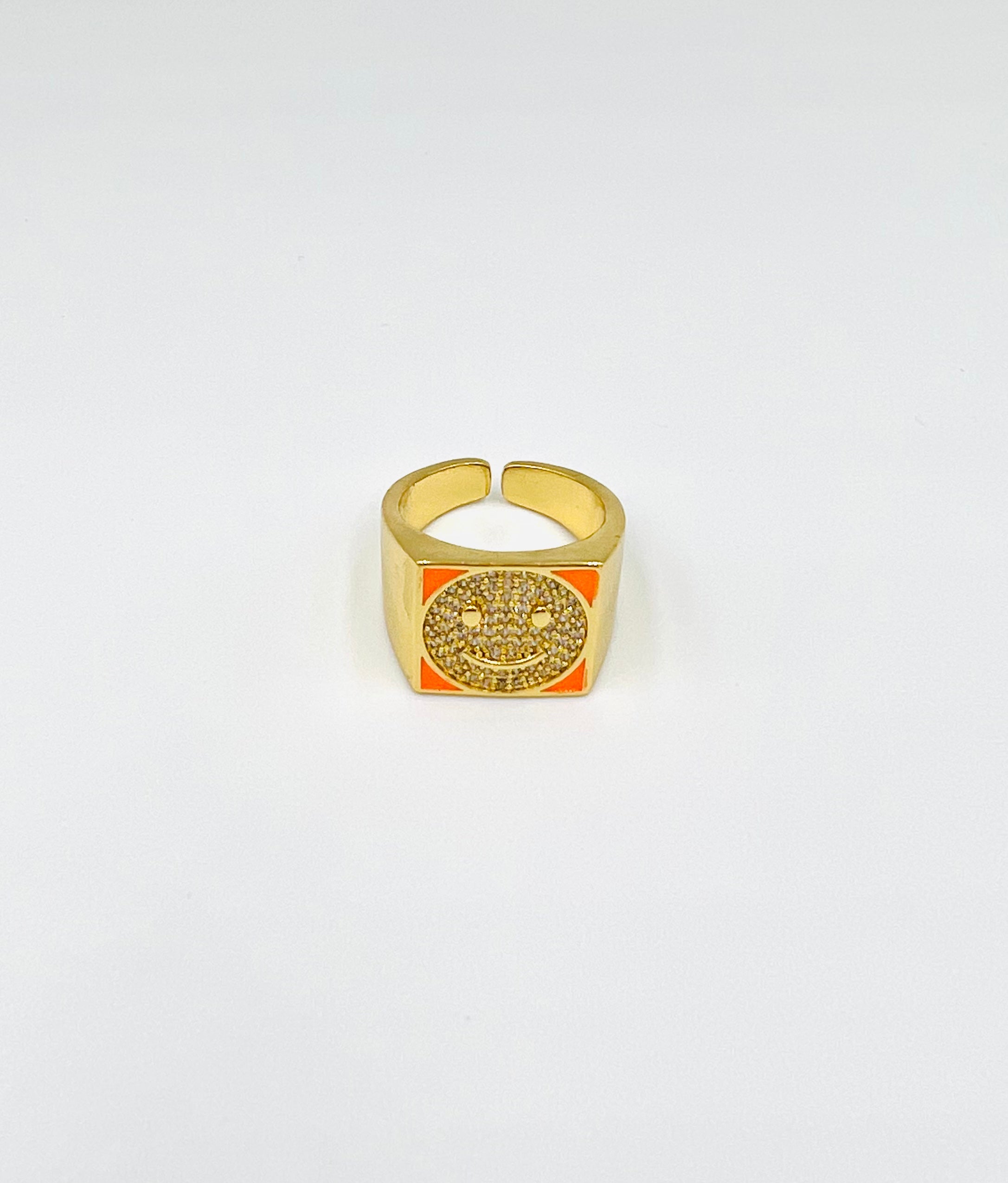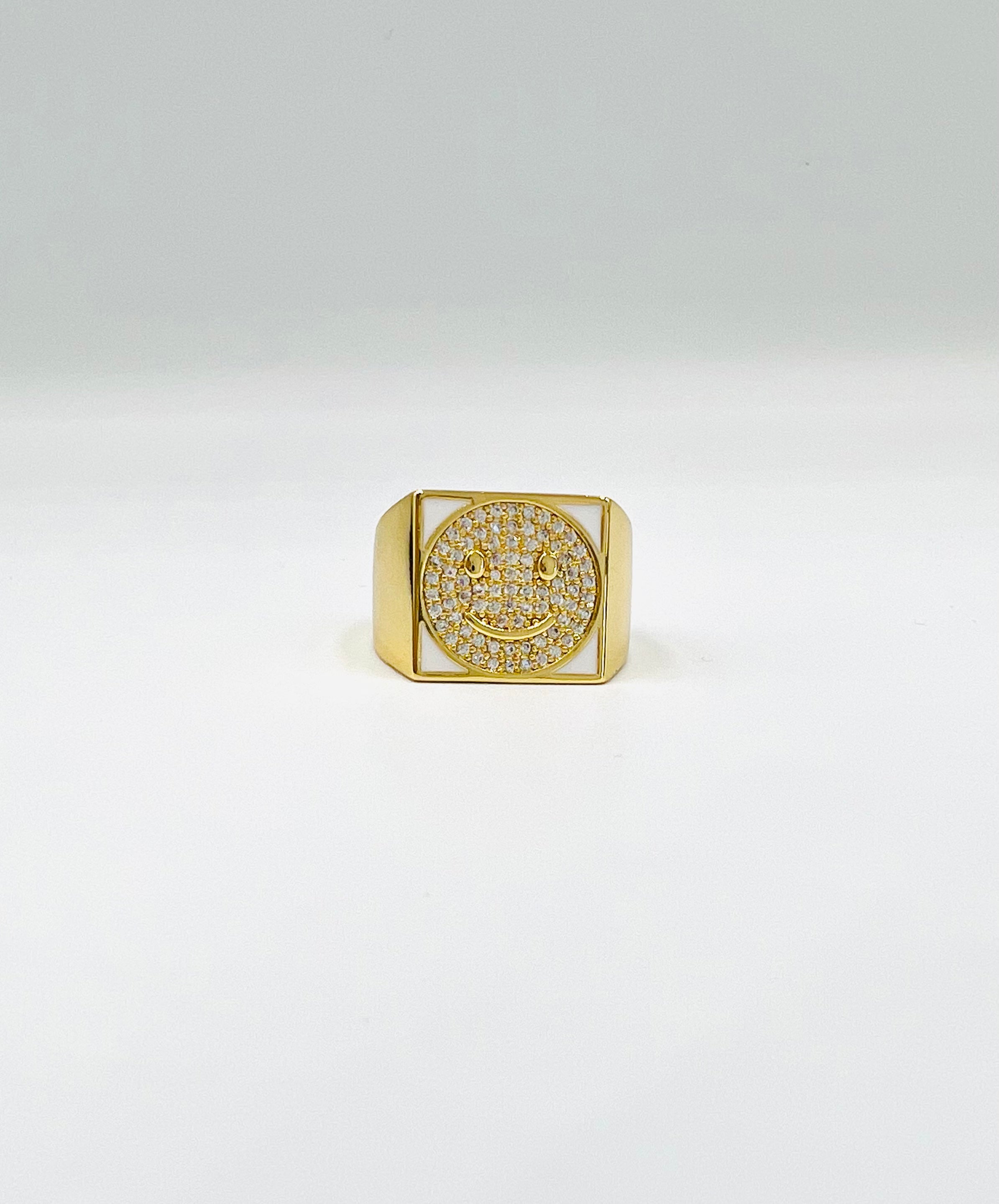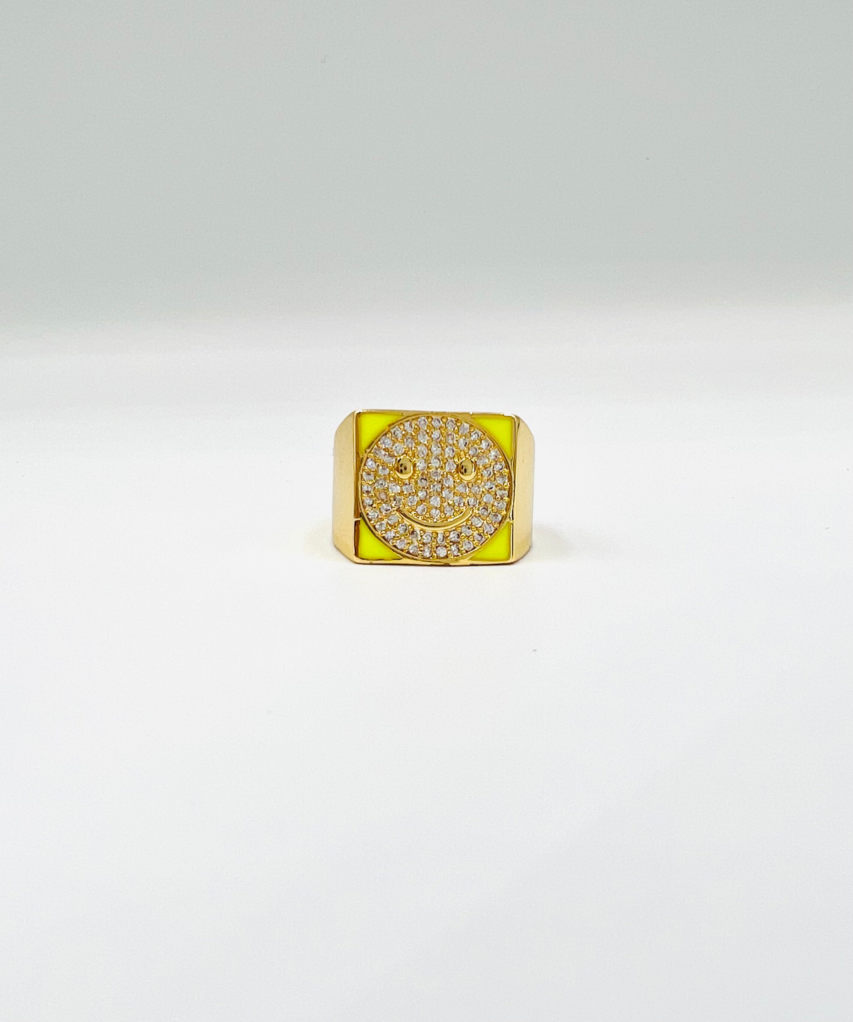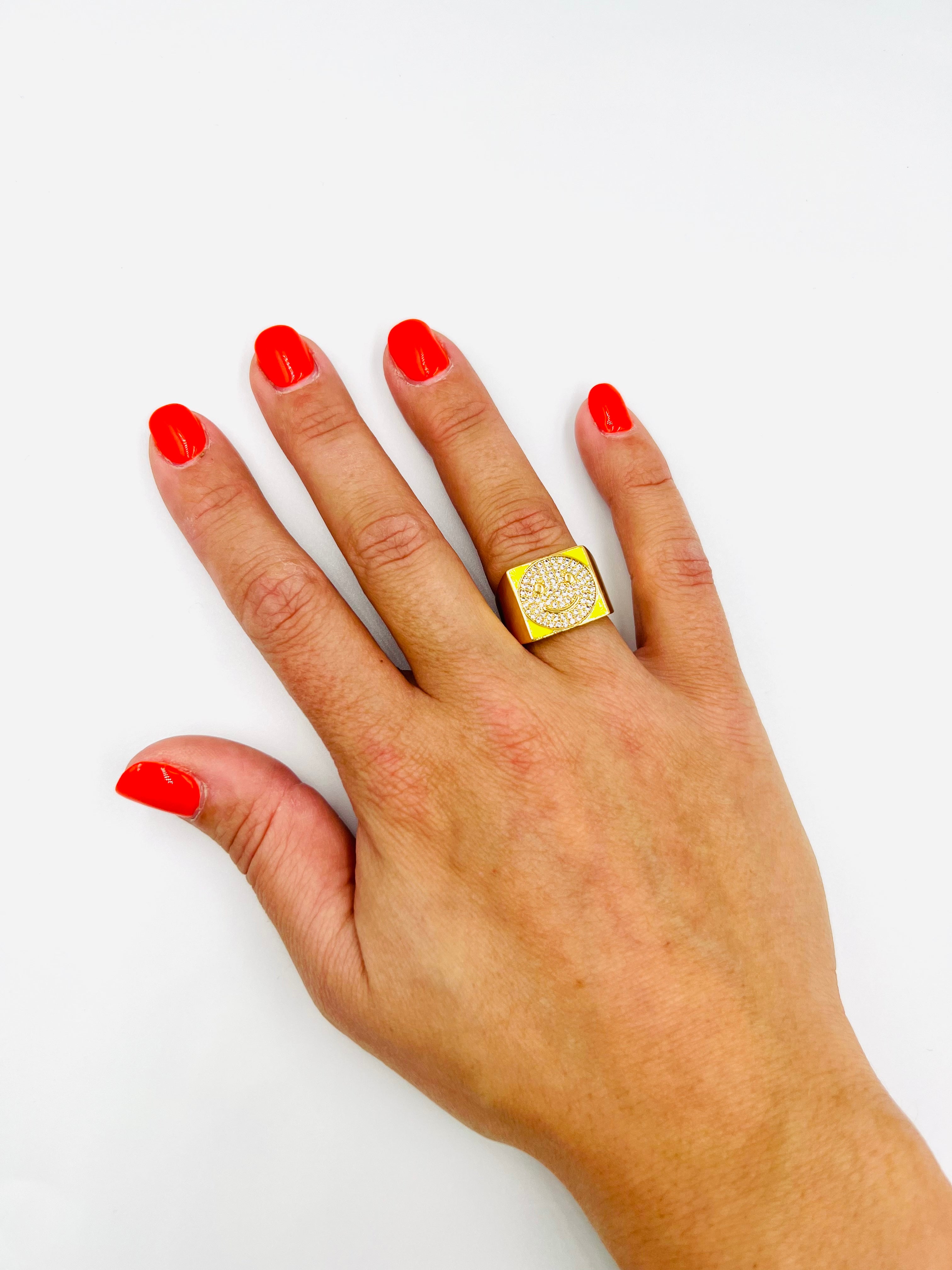Ajoutez de la fantaisie à votre look avec cette bague en plaqué or 18 carats et zircon. Sa luminosité ajoutera un peu d'espièglerie à votre tenue. Donnez une touche fun à votre look à toutes heures du jour et de la nuit ! Un sourire n'est jamais superflu !