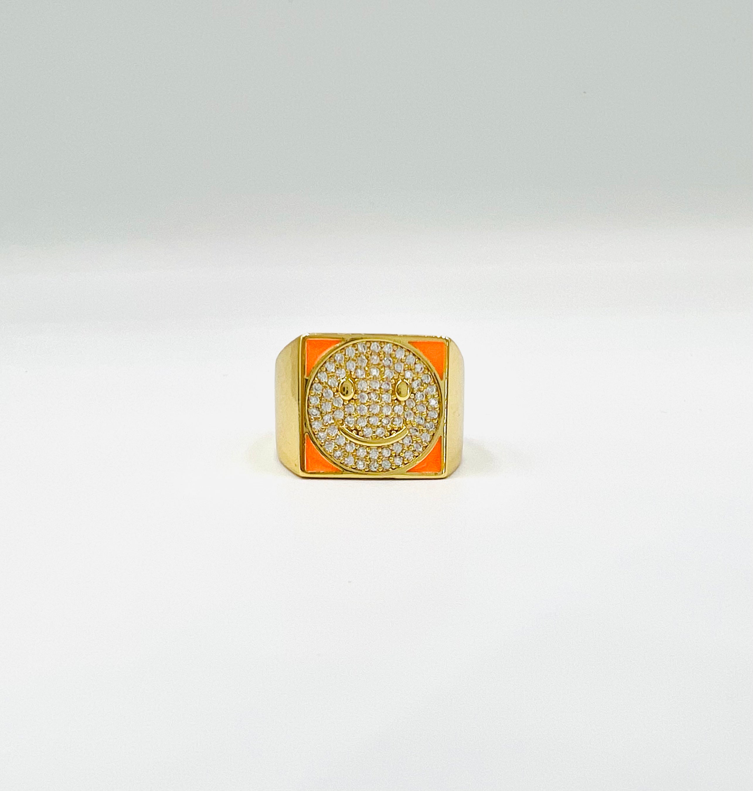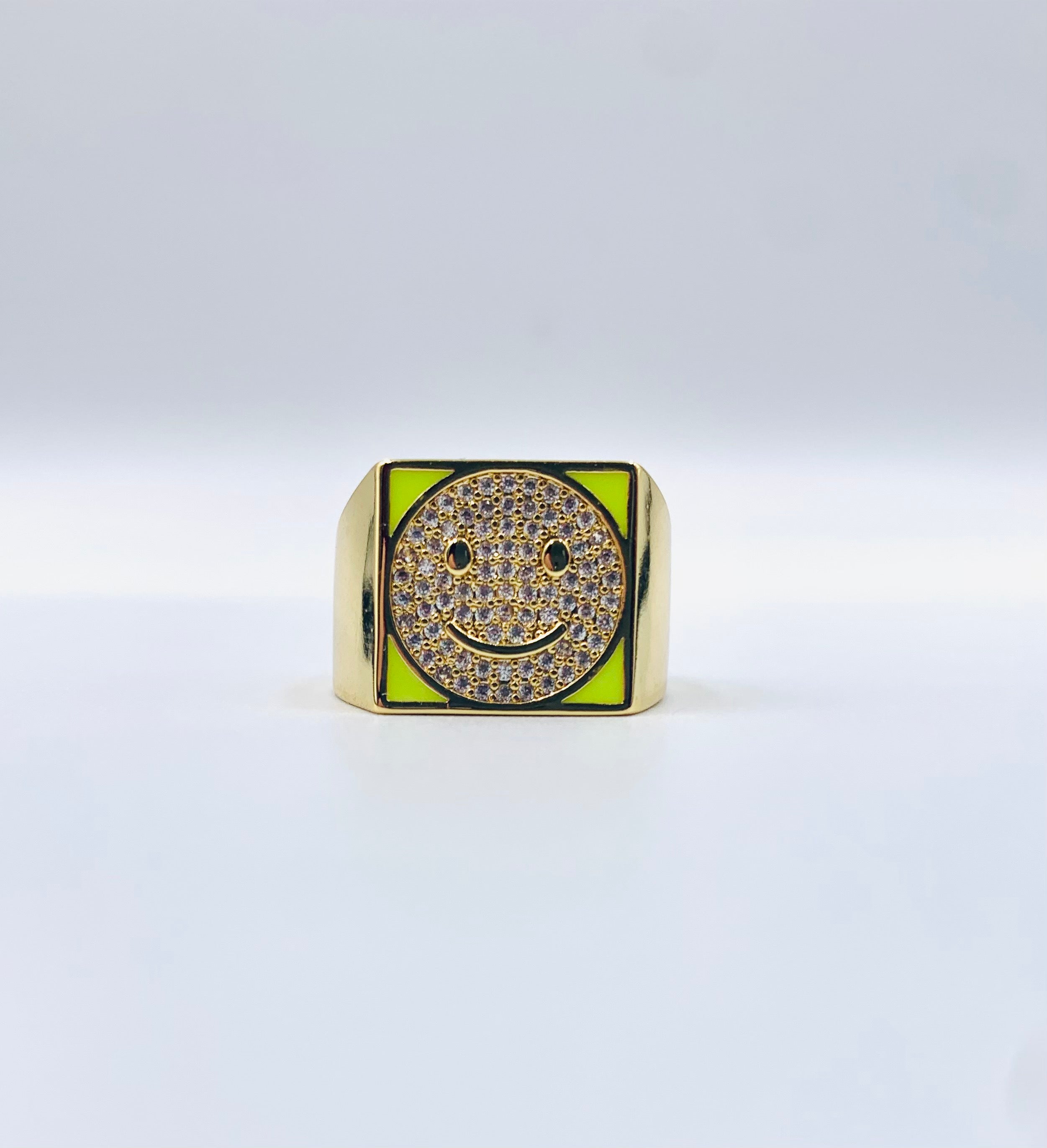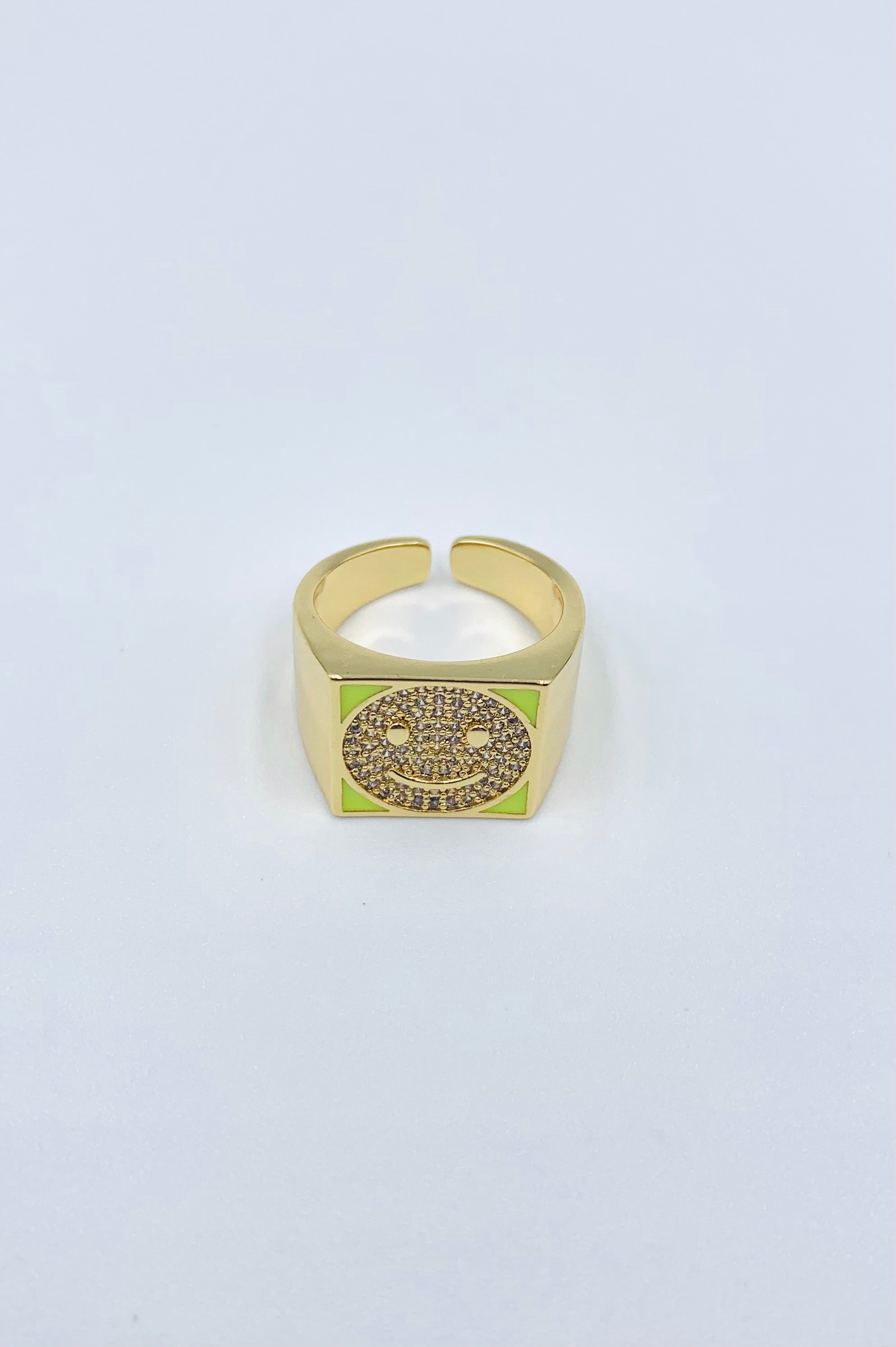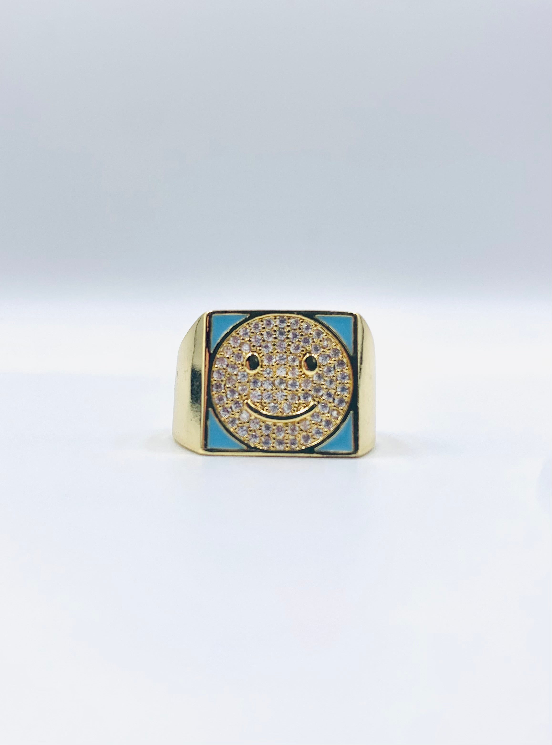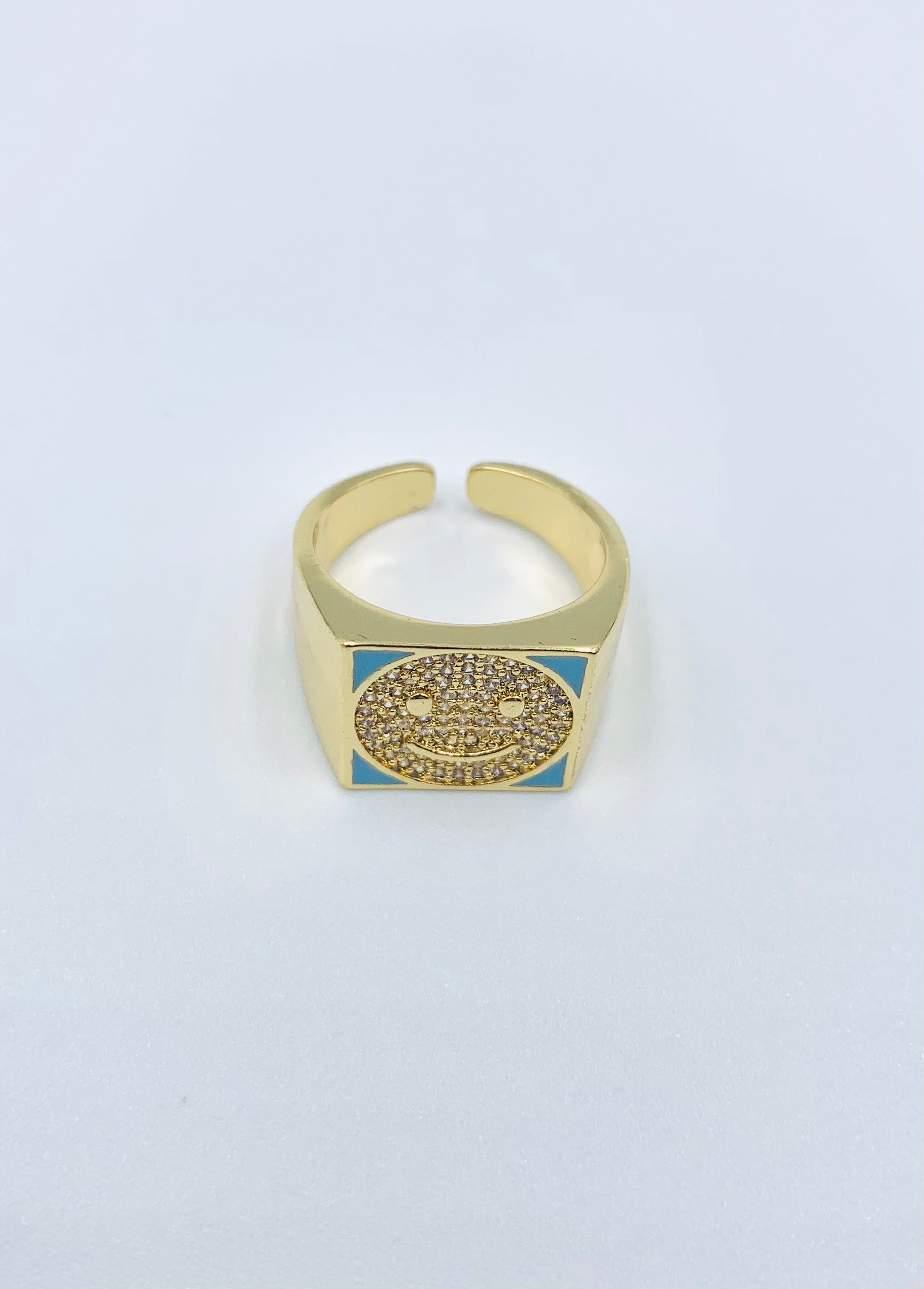 Ajoutez de la fantaisie à votre look avec cette bague en plaqué or 18 carats et zircon. Sa luminosité ajoutera un peu d'espièglerie à votre tenue. Donnez une touche fun à votre look à toutes heures du jour et de la nuit ! Un sourire n'est jamais superflu !