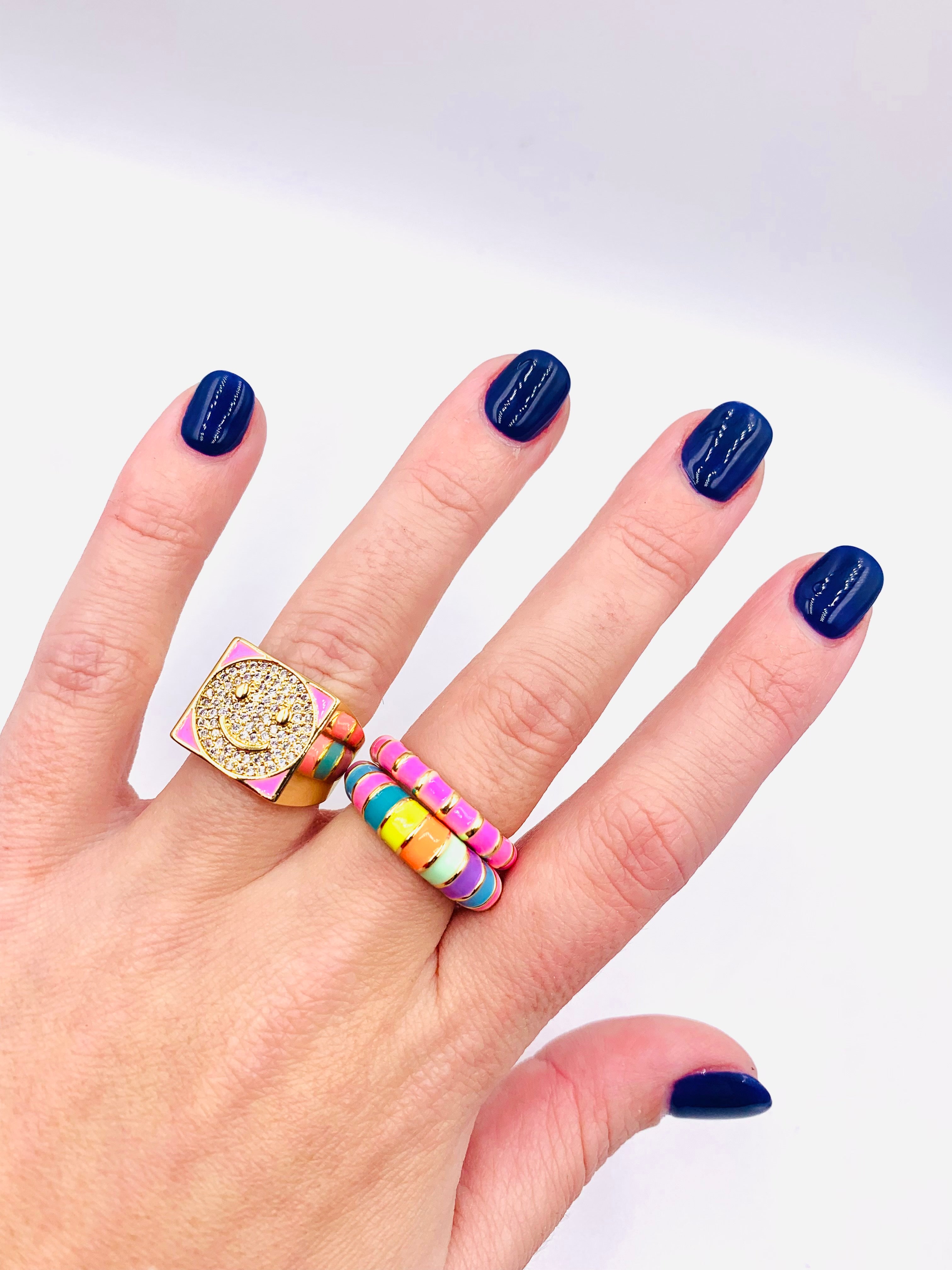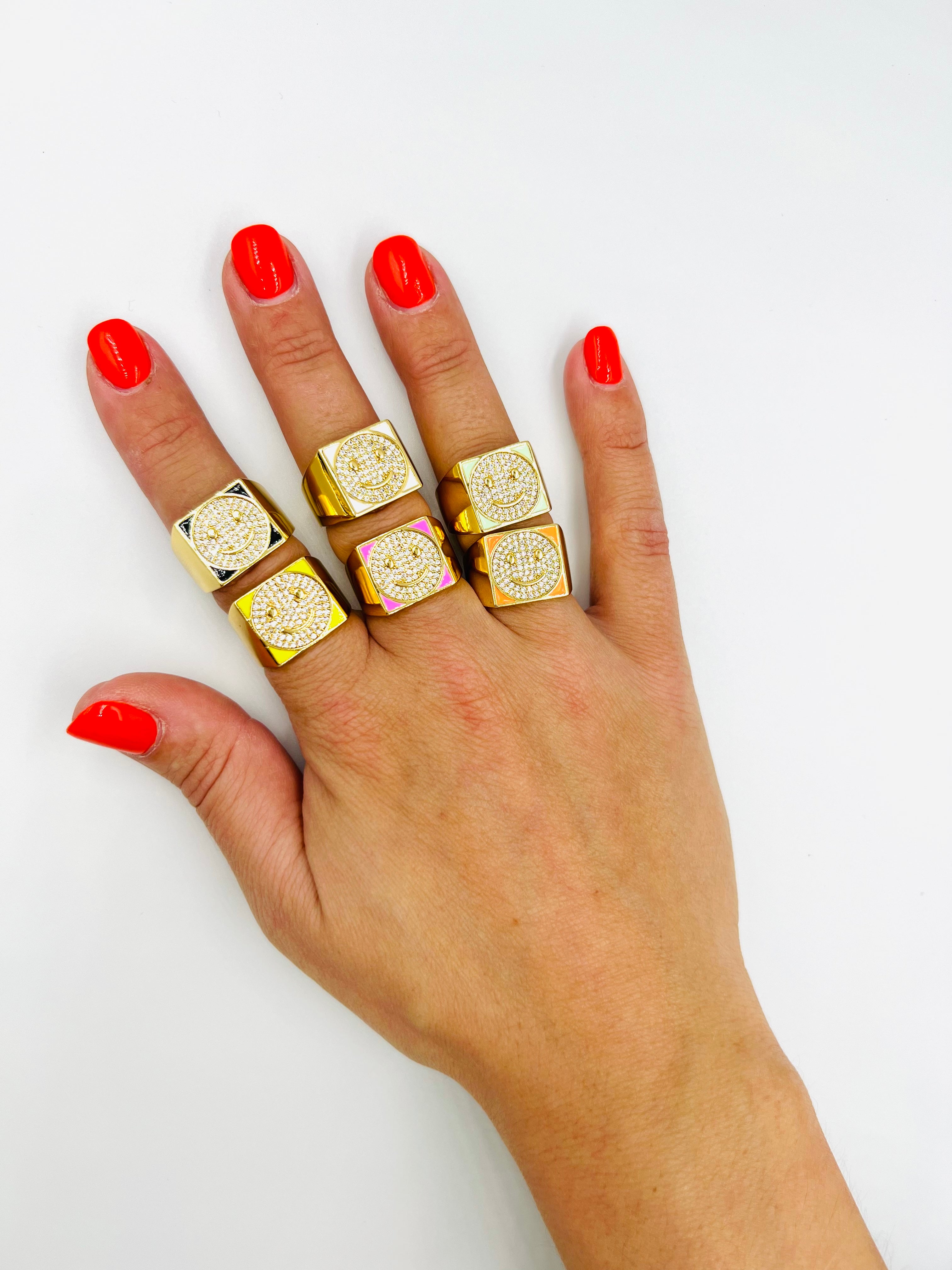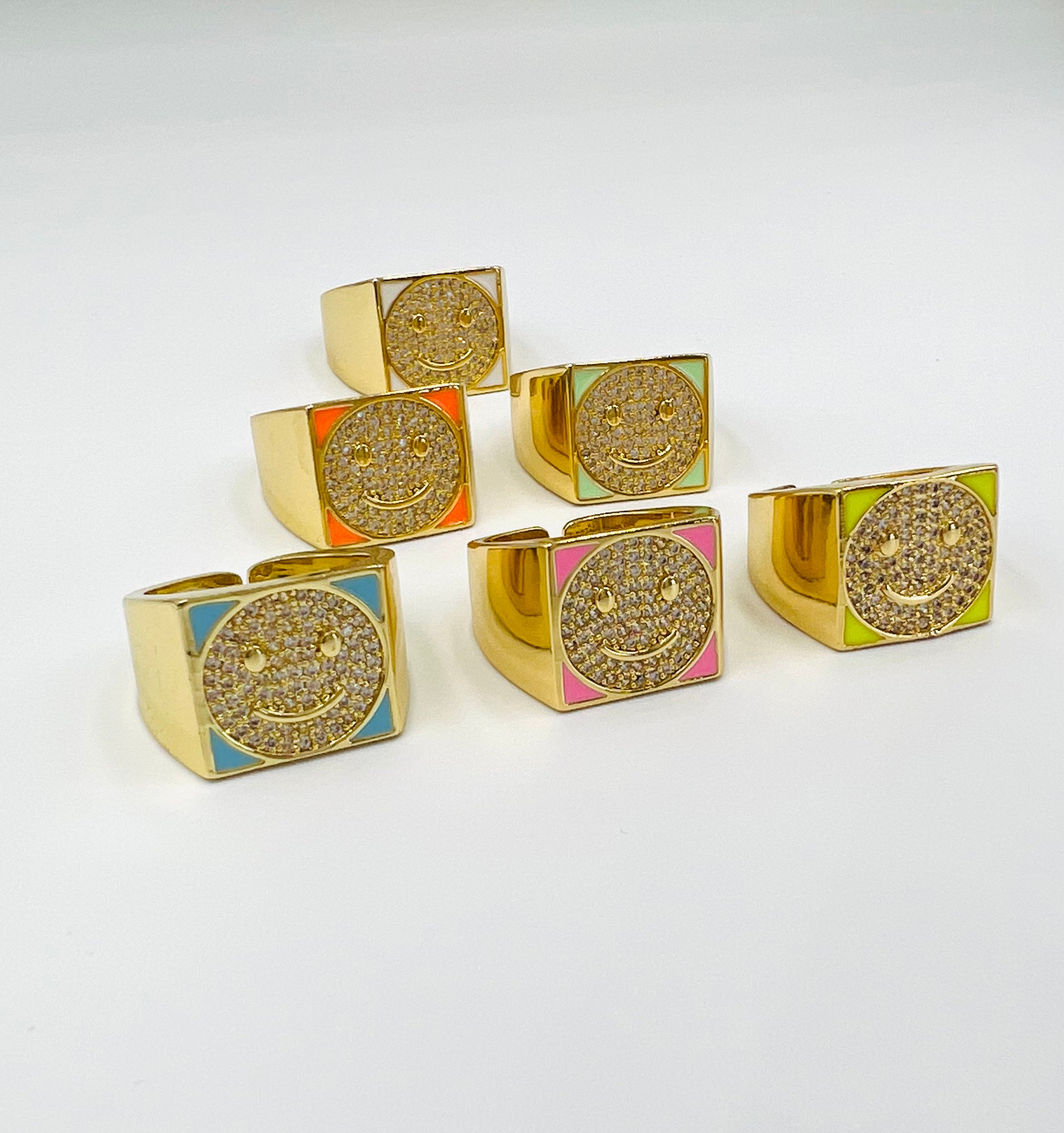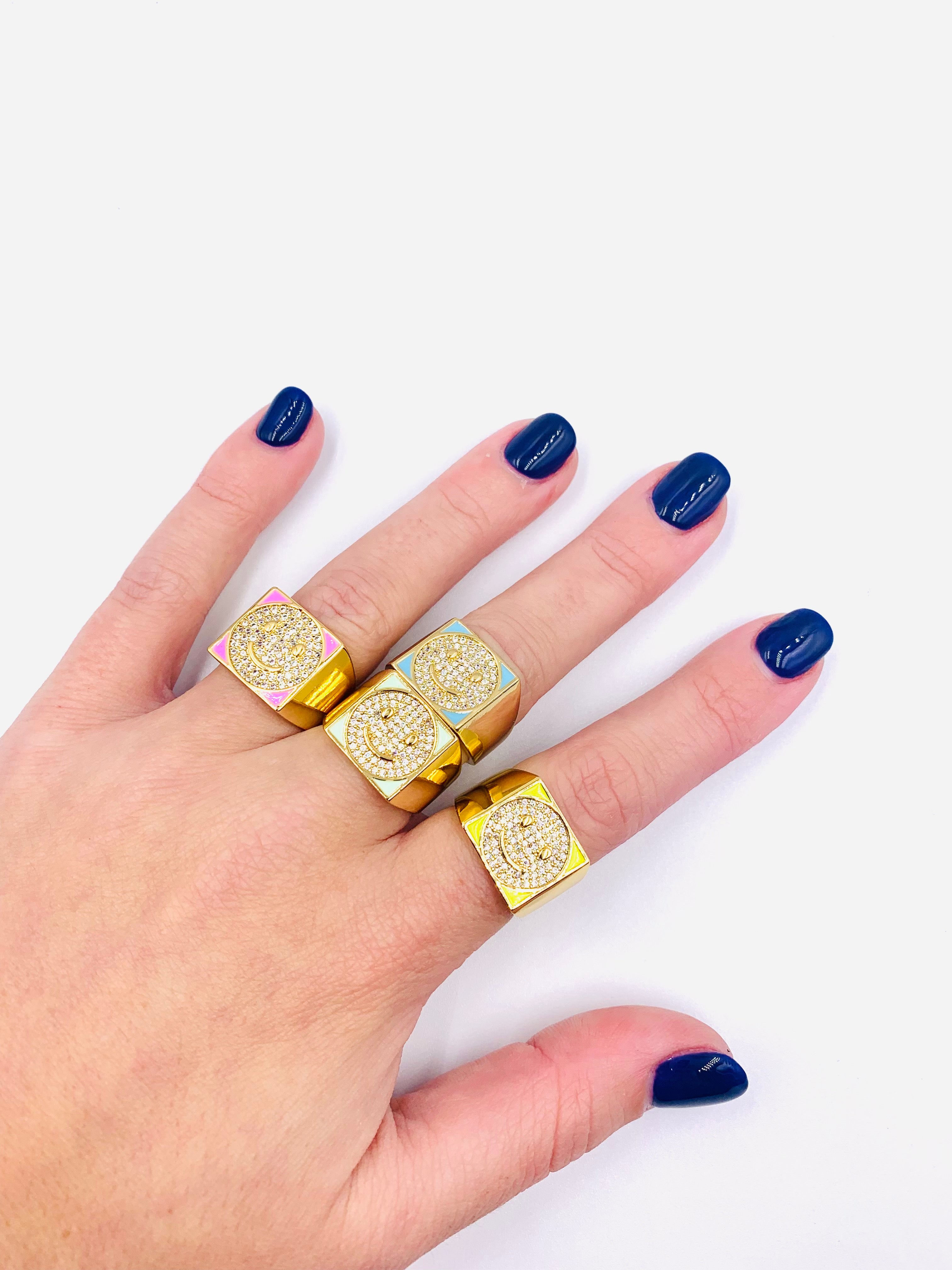 Ajoutez de la fantaisie à votre look avec cette bague en plaqué or 18 carats et zircon. Sa luminosité ajoutera un peu d'espièglerie à votre tenue. Donnez une touche fun à votre look à toutes heures du jour et de la nuit ! Un sourire n'est jamais superflu !