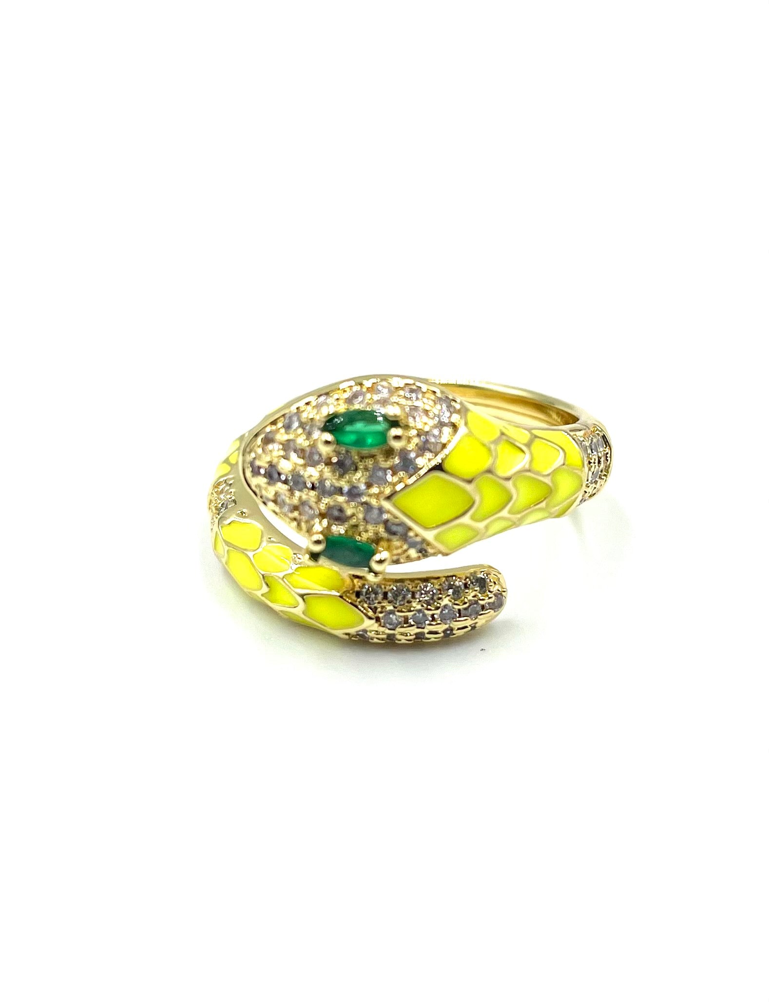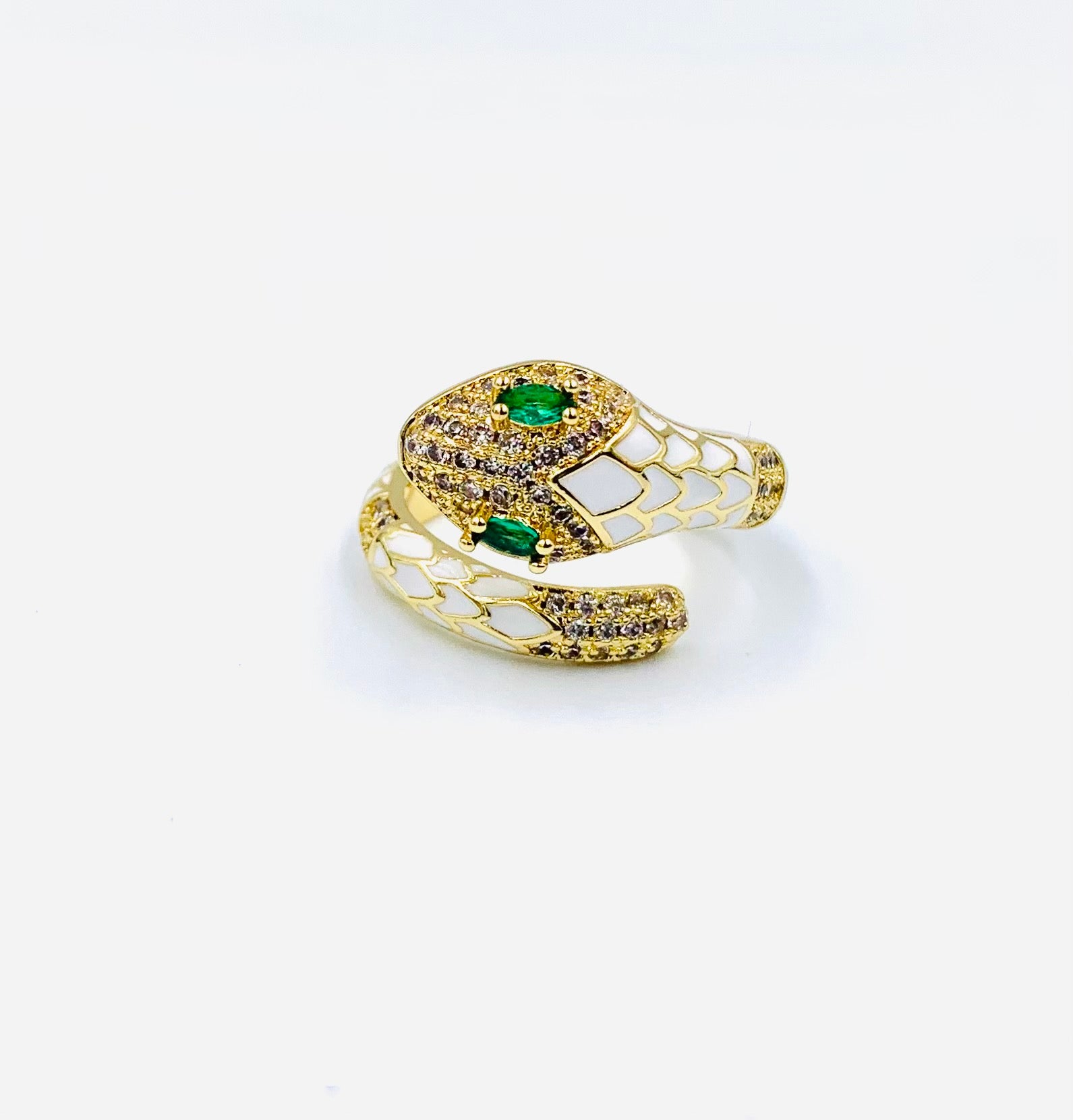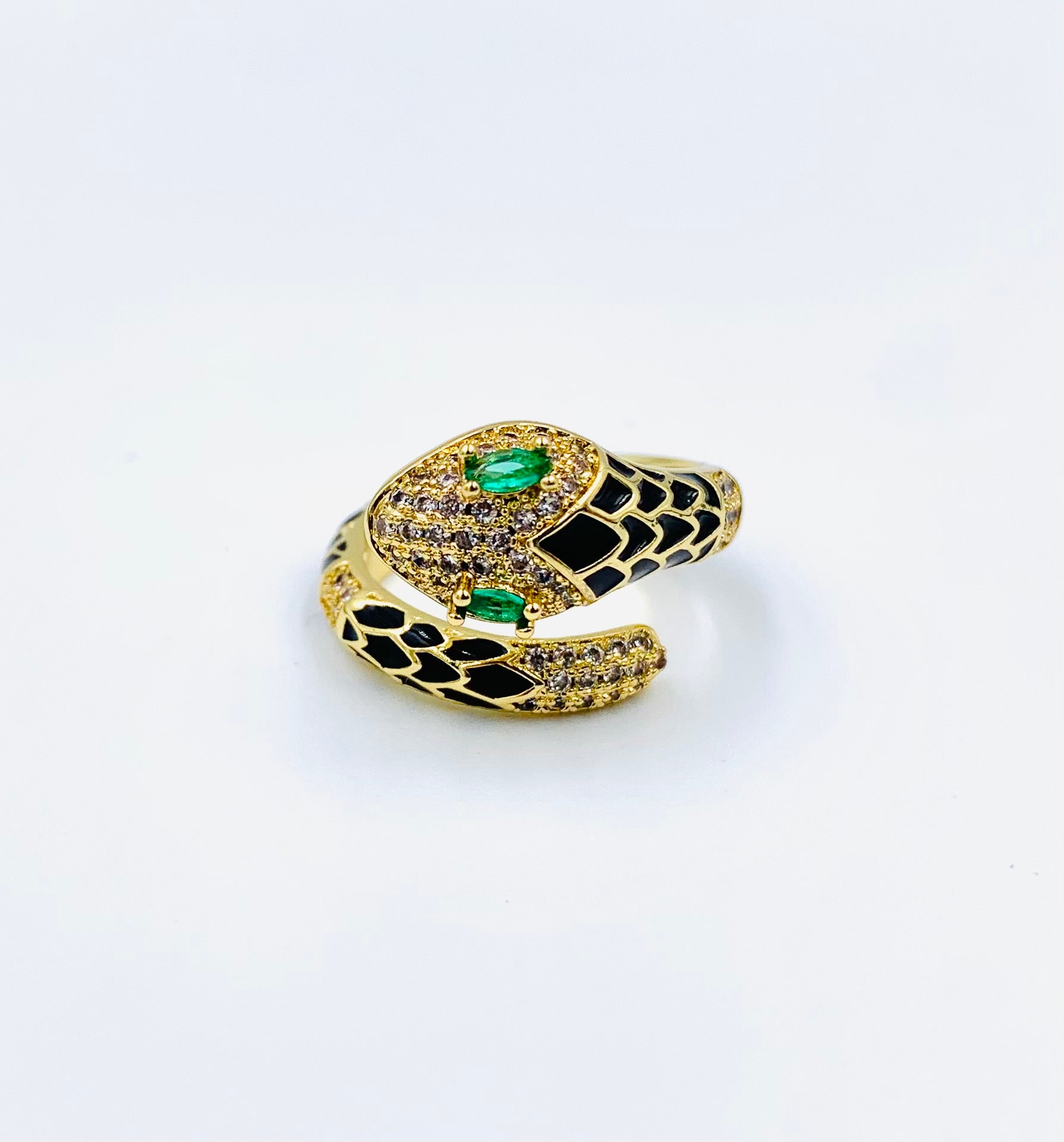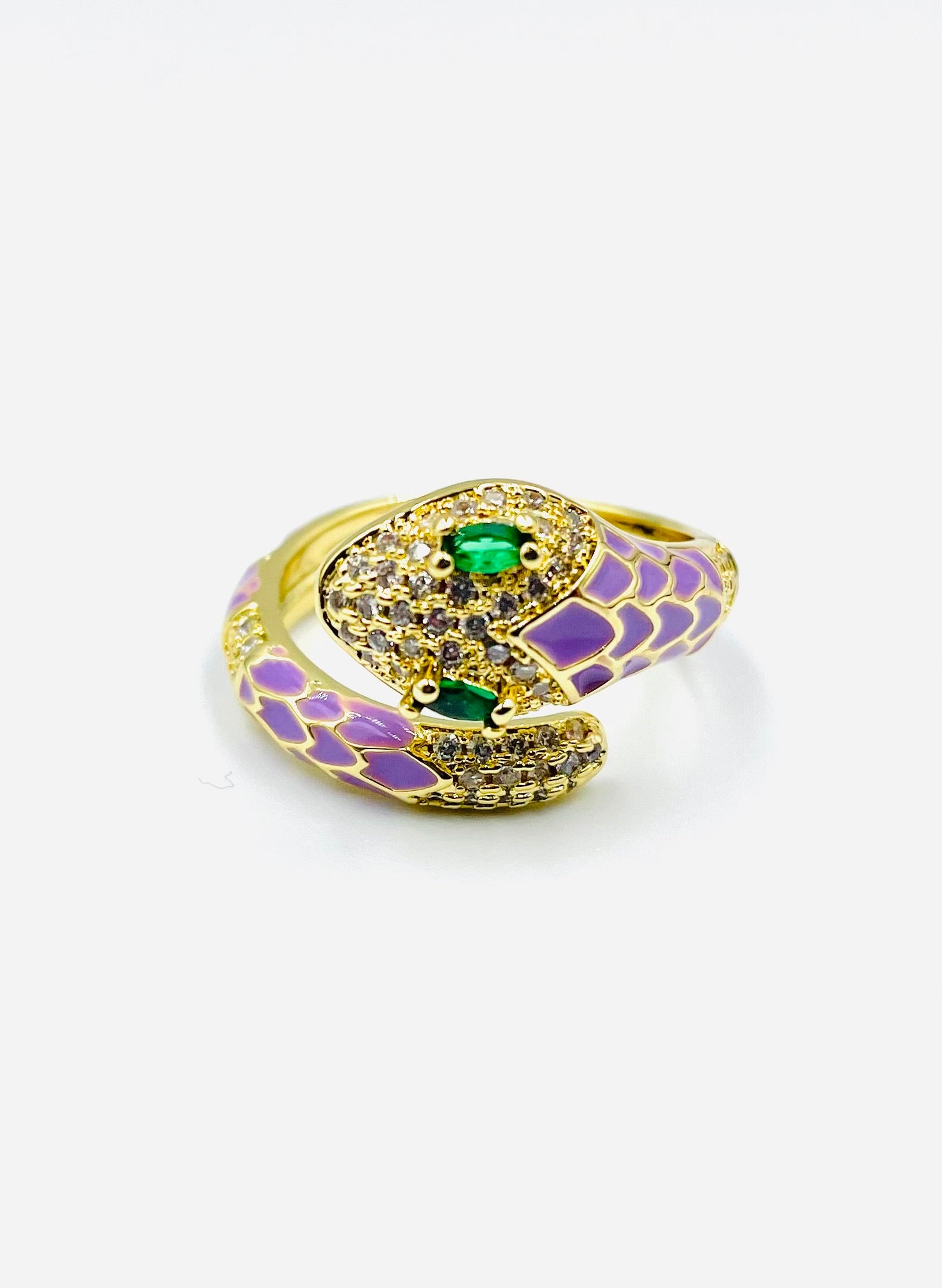 Sublimez votre main avec cette bague serpent en plaqué or 18 carats, zirco et émail. Féminine et élégante, elle se porte en toutes occasions pour donner une touche de sophistication à votre style. Un bijou raffiné qui attirera regards et compliments !