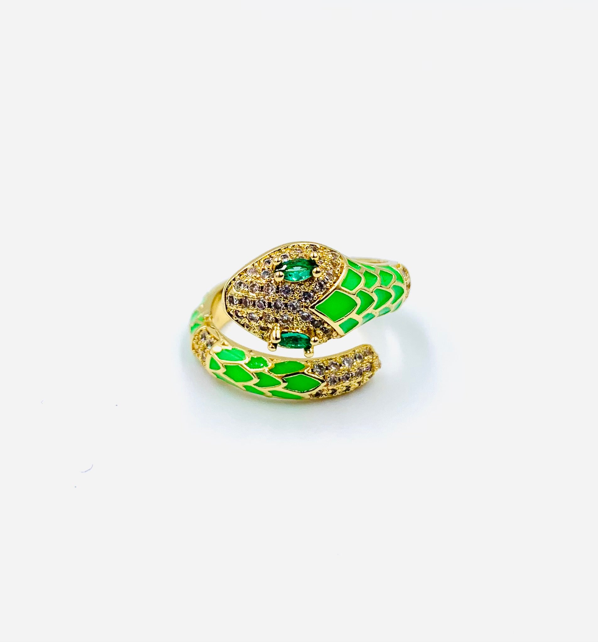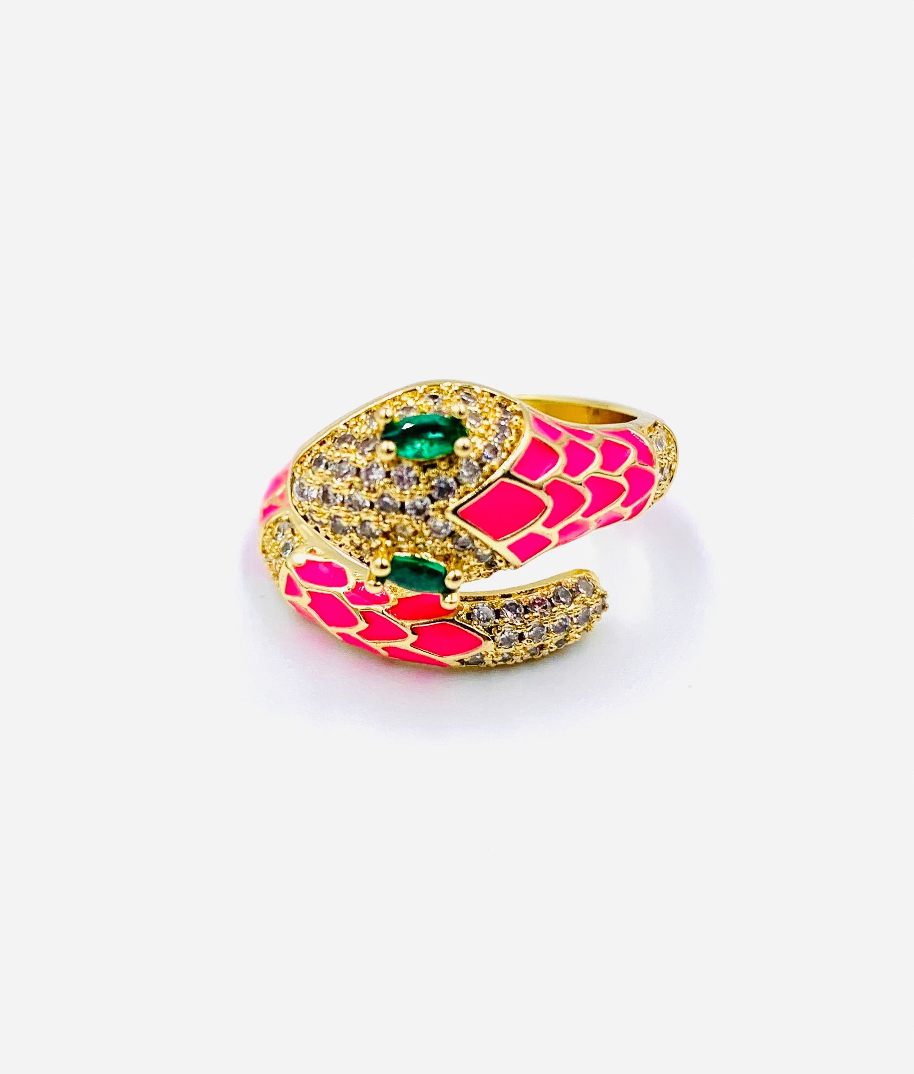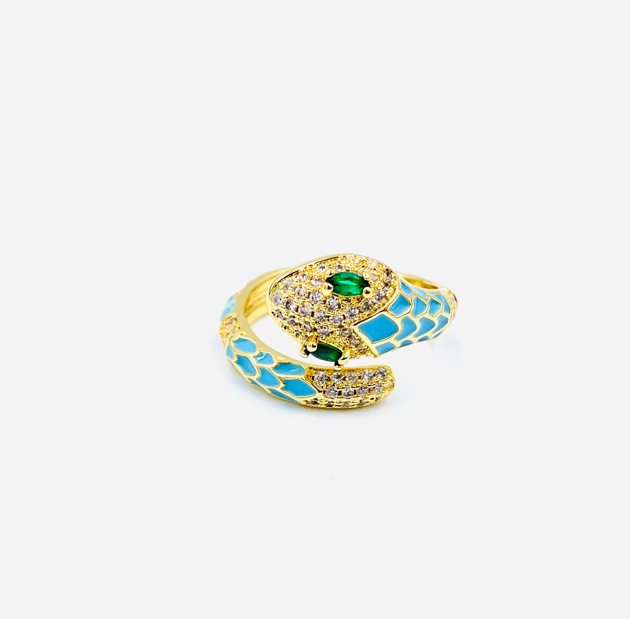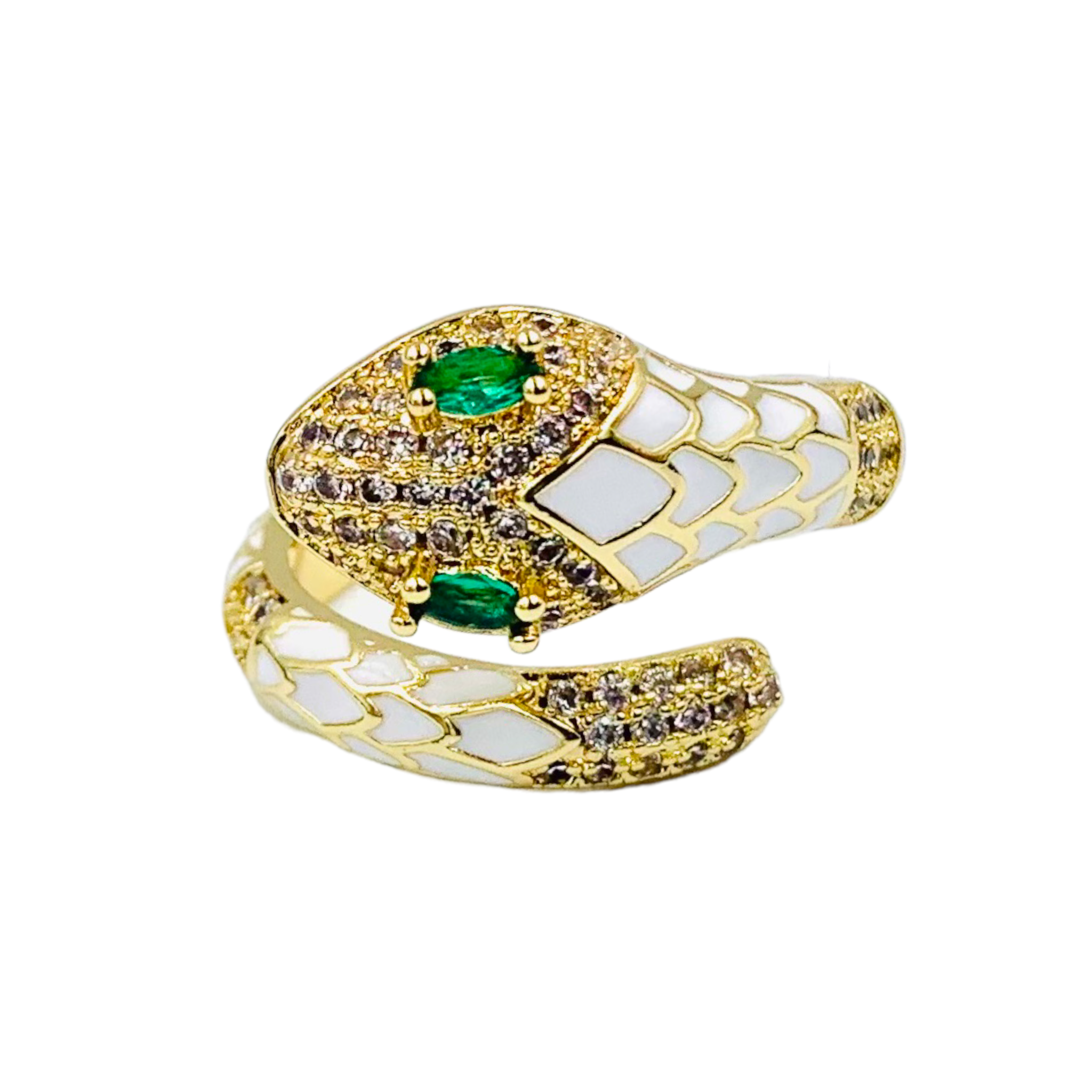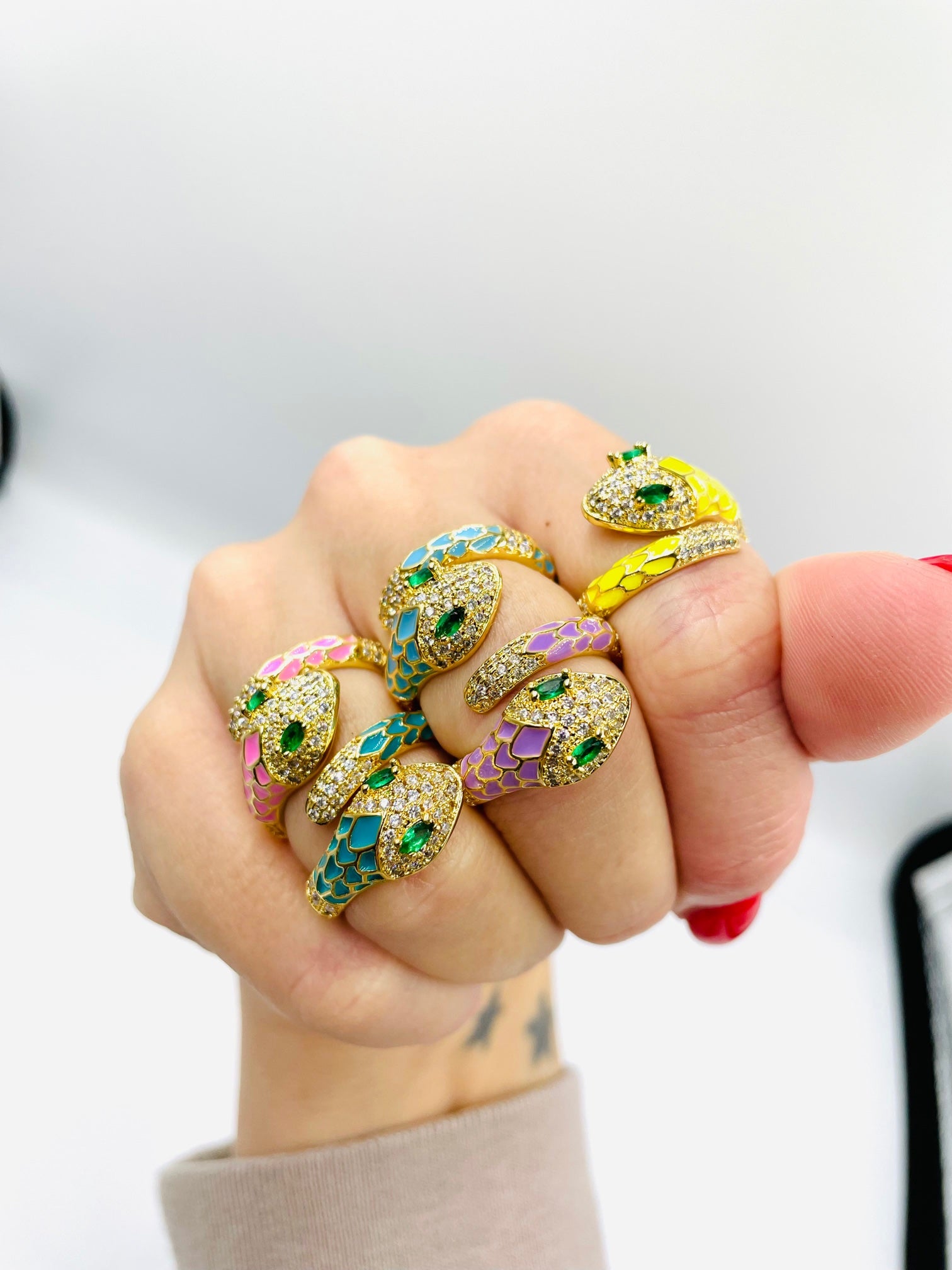 Sublimez votre main avec cette bague serpent en plaqué or 18 carats, zirco et émail. Féminine et élégante, elle se porte en toutes occasions pour donner une touche de sophistication à votre style. Un bijou raffiné qui attirera regards et compliments !