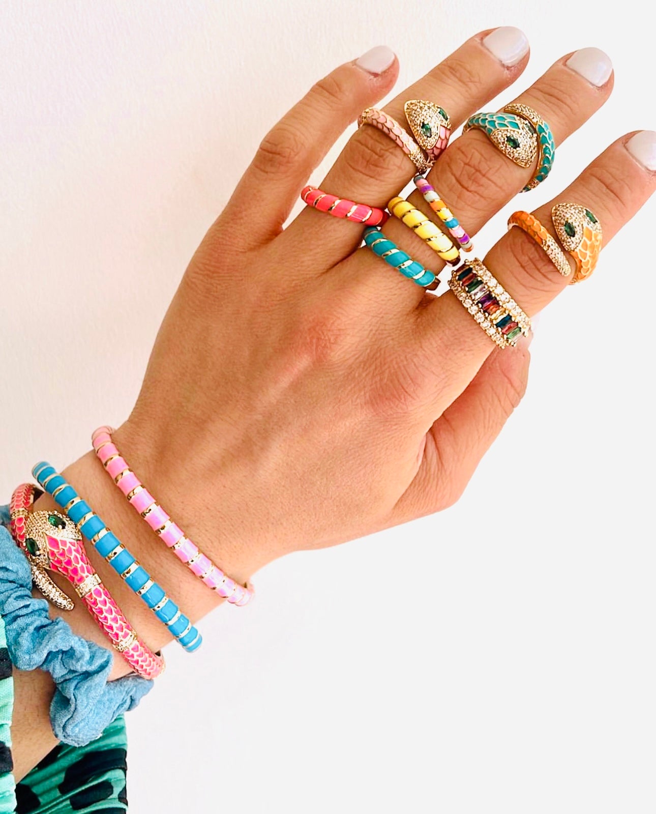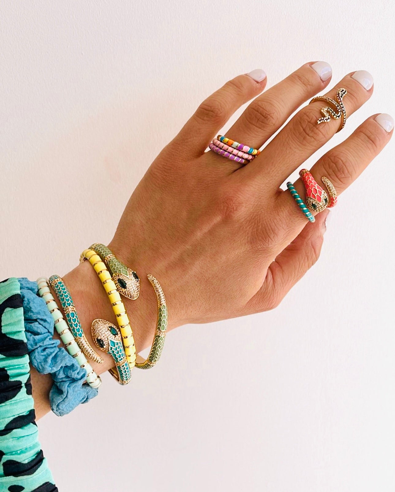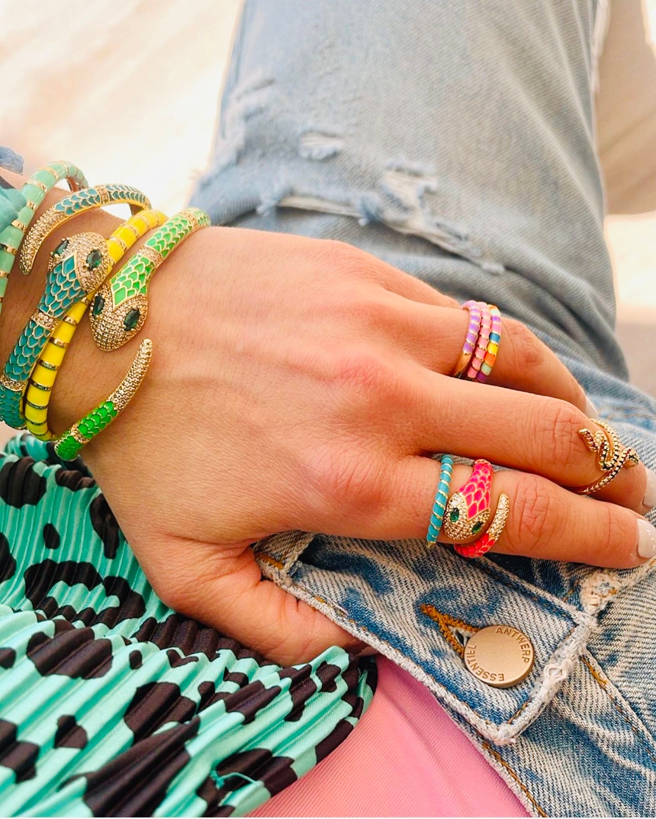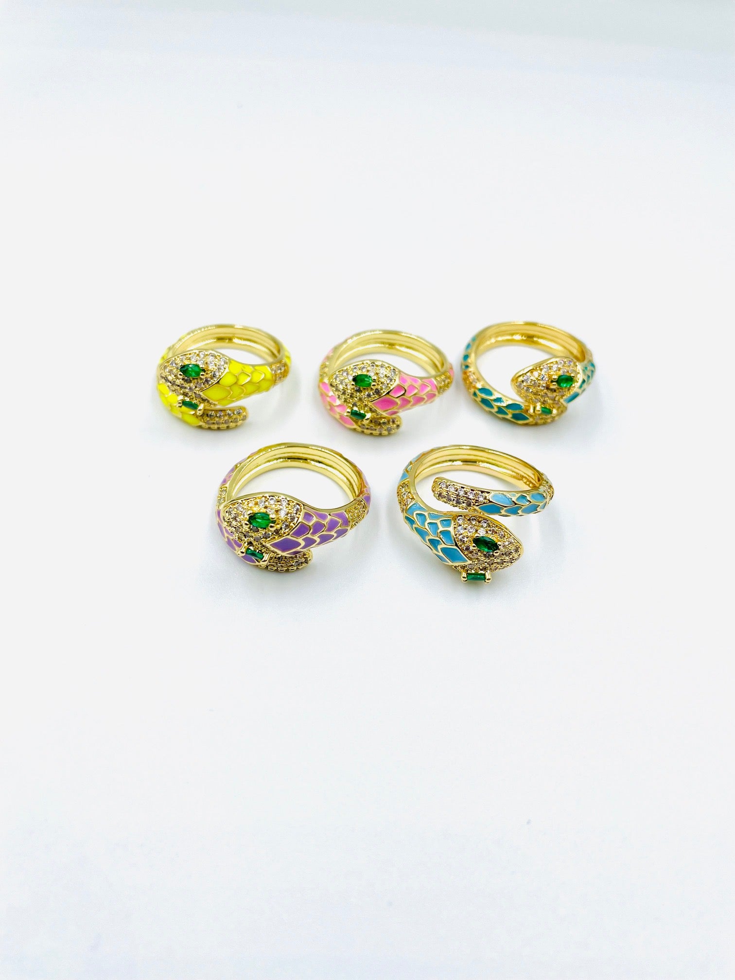 Sublimez votre main avec cette bague serpent en plaqué or 18 carats, zirco et émail. Féminine et élégante, elle se porte en toutes occasions pour donner une touche de sophistication à votre style. Un bijou raffiné qui attirera regards et compliments !